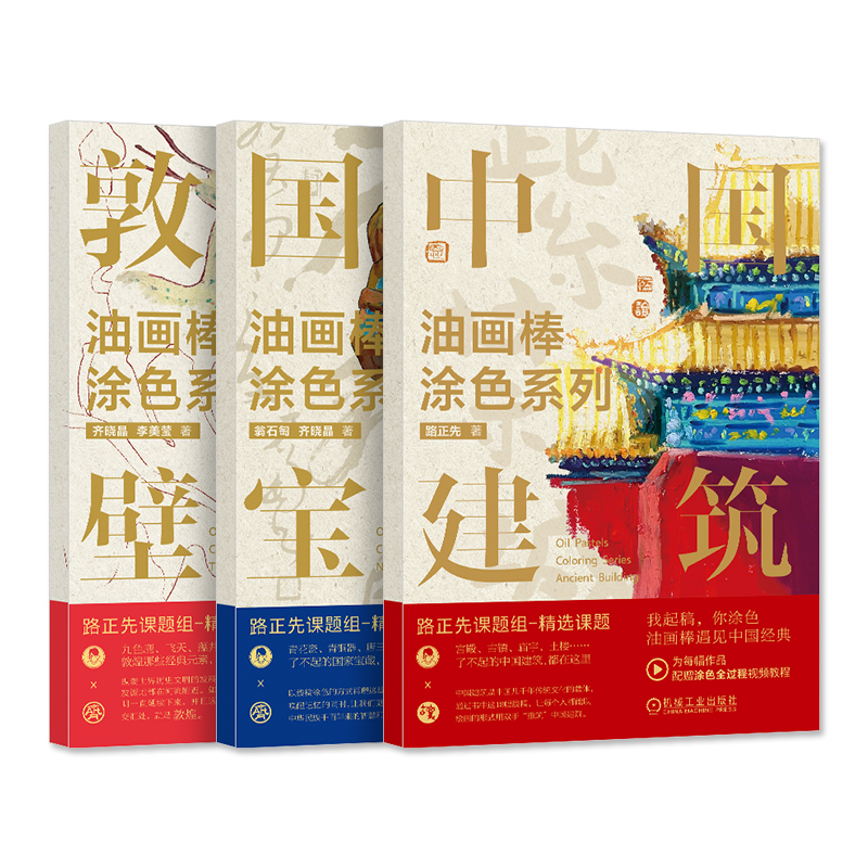 【3本套】油畫棒塗色系列 中國建築+ 敦煌壁畫+國家寶藏
