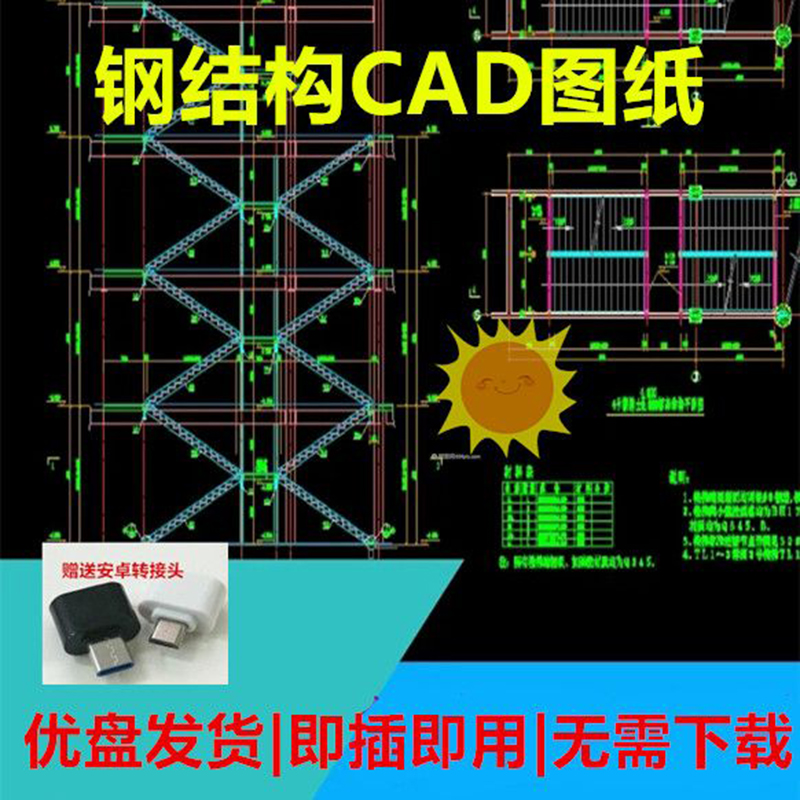 鋼結構工程建築設計CAD施工圖紙 U盤16G 平面效果圖辦公樓車間廠房方案(無需下載,即插即看)