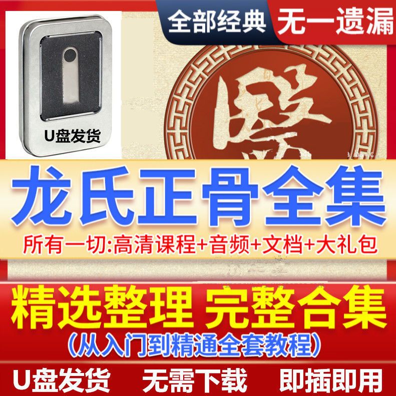 中醫龍氏正骨手法+羅氏正骨手法 整脊全套視頻教程U盤128G 高清視頻教程 (即插即看 無需下載 手機電腦都能看)即插即看 無需下載 手機電腦都能看