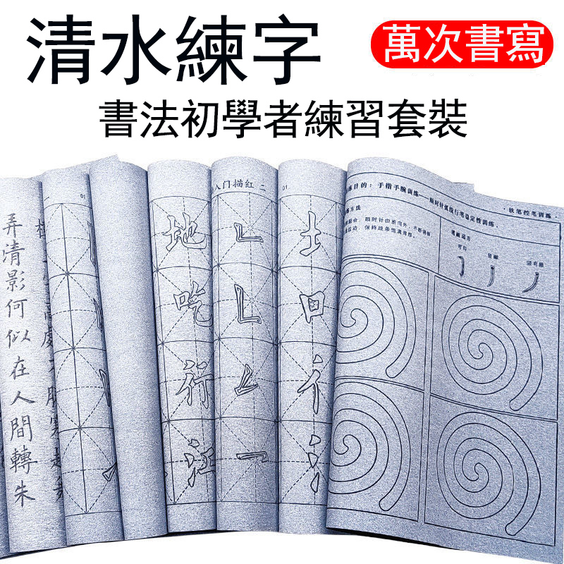 初學者毛筆書法控筆訓練萬次水寫布 練習全套筆劃 (13張水寫布 贈2只毛筆+2水碟) 以水代墨 重複練習 傳承經典!乾淨實用,萬次書寫