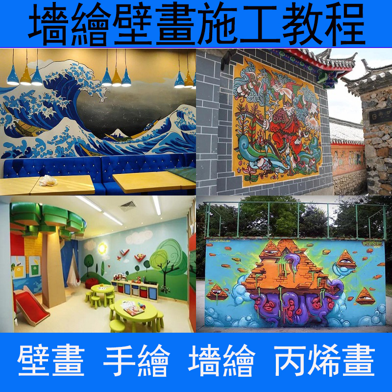 手繪牆繪壁畫裝飾藝術視頻教程 墻畫壁畫丙烯畫自學施工資料練習課程隨身碟32G