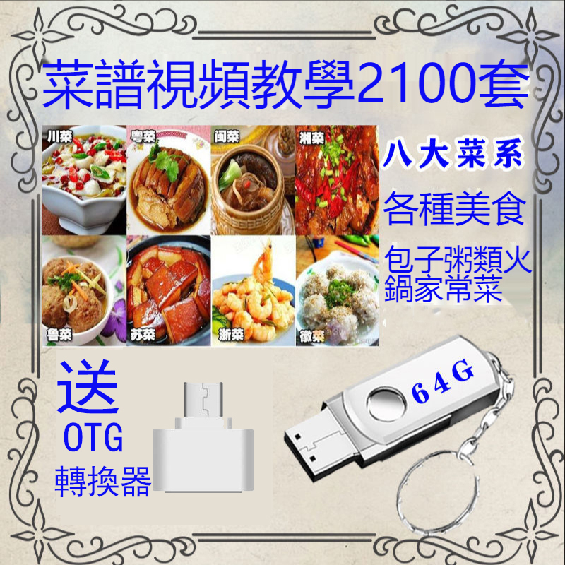 學做菜視頻u盤64G八大菜系川湘粵魯炒家常菜譜烹飪鹵廚師零基礎教程(附OTG轉換器)