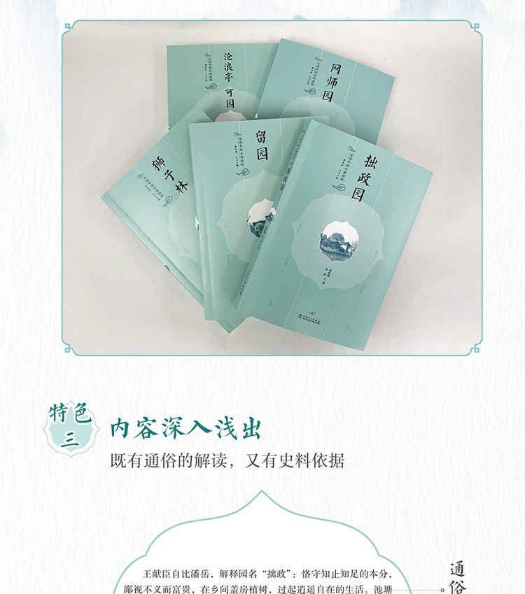 本書以紙上走讀庭園的形式展開,依文化解讀劃分景區空間概念,以實地遊覽路線為導向,串聯整座園林,極具參考價值。 "