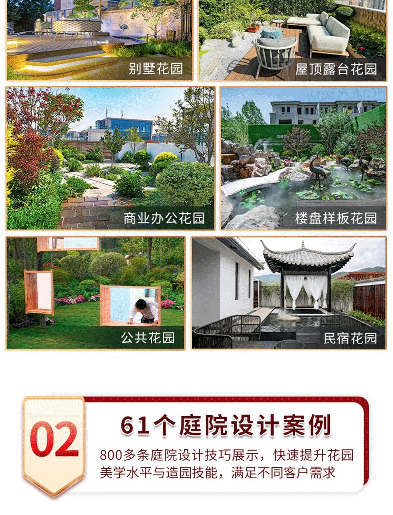 本書優選了國內數十家知名景觀設計公司近期完成的不同風格、具有特色的庭院花園設計案例,分為別墅花園、屋頂露台花園、商業會所花園、樣板花園、公共花園、民宿花園6大類,共 61個項目進行展示。 每個項目對面積、設計師、設計施工單位、設計困難、設計靈感、設計理念及解決方案均有系統介紹,並挑選了各個花園不同角度的精美圖片進行完整的全景展示或局部呈現,還配 有相應的圖紙為設計師提供直接參考。 對花園設計從業者和別墅、民宿等的業主,均有很好的借鏡意義。 除了紙本版書籍收錄的61個案例,編者也把99個庭院案例製作成了電子版贈送給讀者,使得讀者有更多的實用案例可以參考。