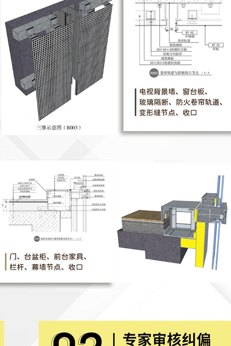 深化設計是室內設計產業的一個細分領域,是從設計概念到專案落地的整個過程中至關重要的一個環節,起著承上啟下的作用。 節點不但要表達設計師對裝飾形式細節的要求,同時,它也是內部構造做法、材料、尺寸以及實施技術的直接表達與體現。 本書以圖解的形式總結了牆、頂、地113個關鍵且常用的施工節點,用3D圖的形式形象展示了場景工藝的關鍵點,分步驟介紹了施工圖節點繪製,是建築設計師、 室內設計師、施工人員、監理人員、驗收人員、房地產開發商均可參考的一本實用指導書。