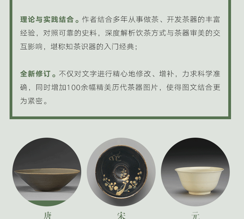 知名茶人靜清和老師茶器美學經典代表作 全面、精心修訂 新增100餘幅歷代茶器圖片 知茶識器入門基礎 追溯飲茶的起源,探索茶器的演變 深度解析飲茶方式與茶器審美的交互影響