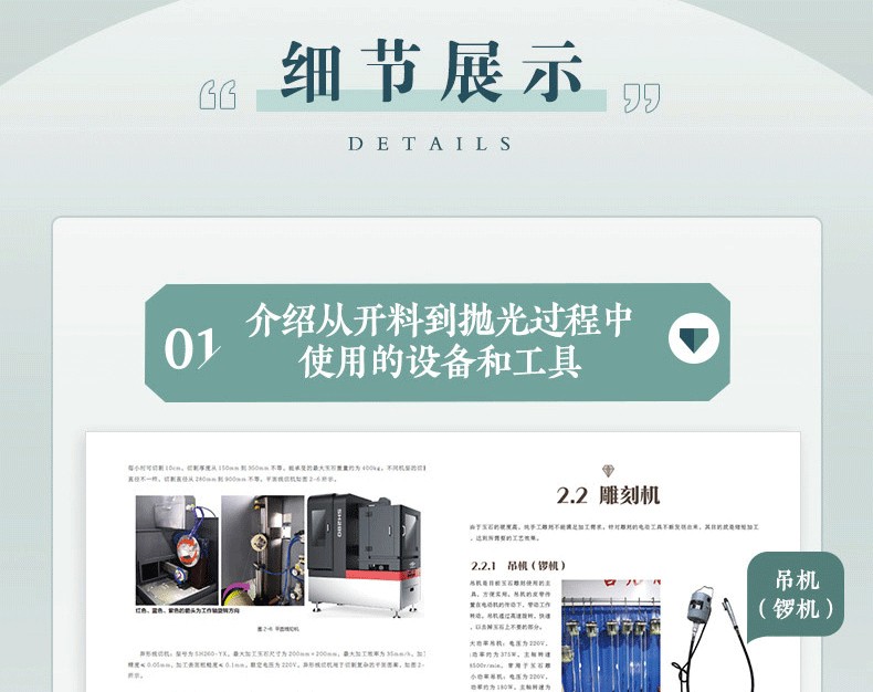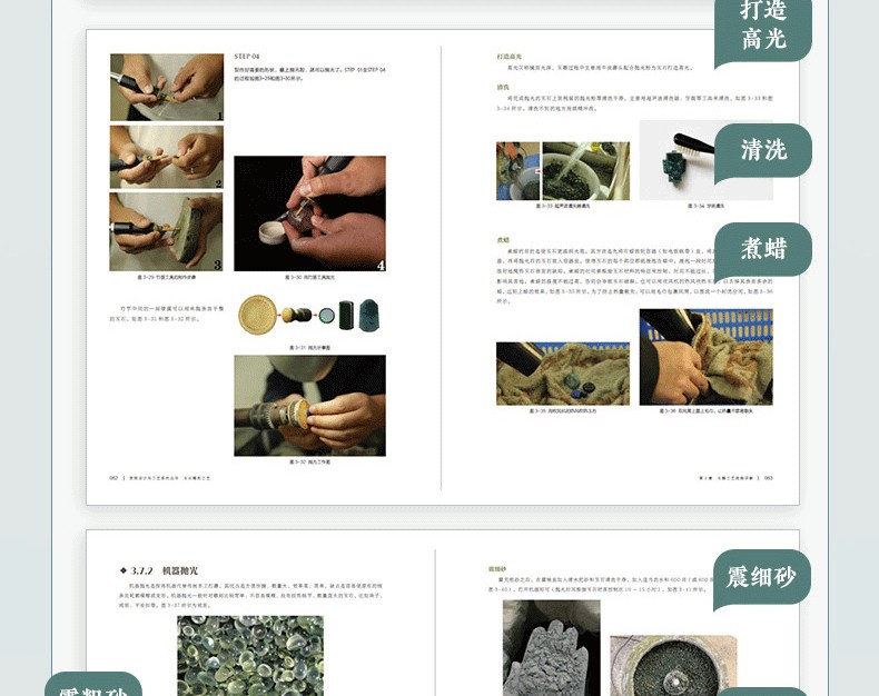 本書包含了玉石雕刻的各個重要領域,以傳統的玉器作坊工作習慣為主軸,導入了一些現代的技法和工具,並和現代首飾設計加工工藝結合,給廣大珠寶首飾愛好者開通一扇通往玉石雕刻的大門。 《玉石雕刻》是一本實用性、指導性強,源於傳承又順應時代發展潮流的琢玉教本。喜歡玉雕手工藝的愛好者和廣大珠寶首飾設計的學生可以通過這本工具書,充分發揮個人動手能力以及設計創作能力,拓展大家在玉石雕刻方面的發展空間。