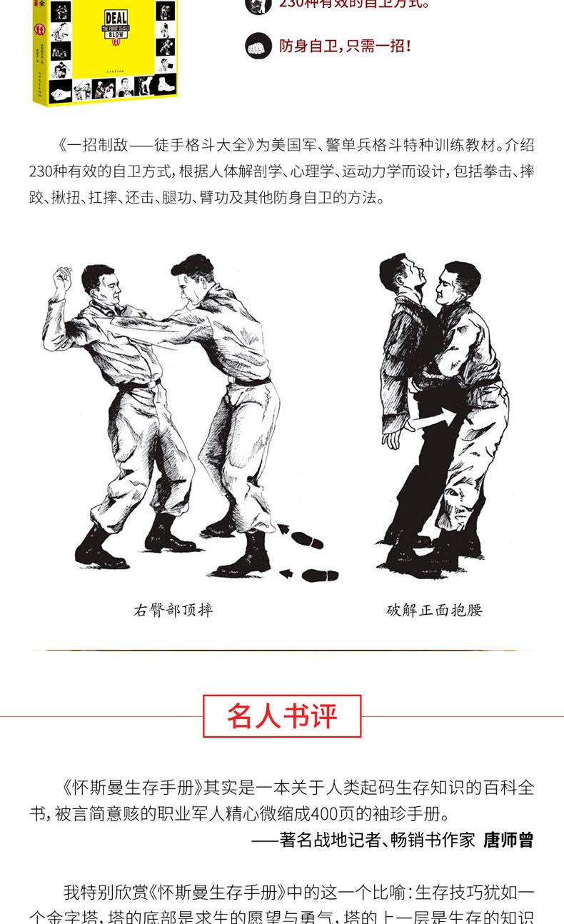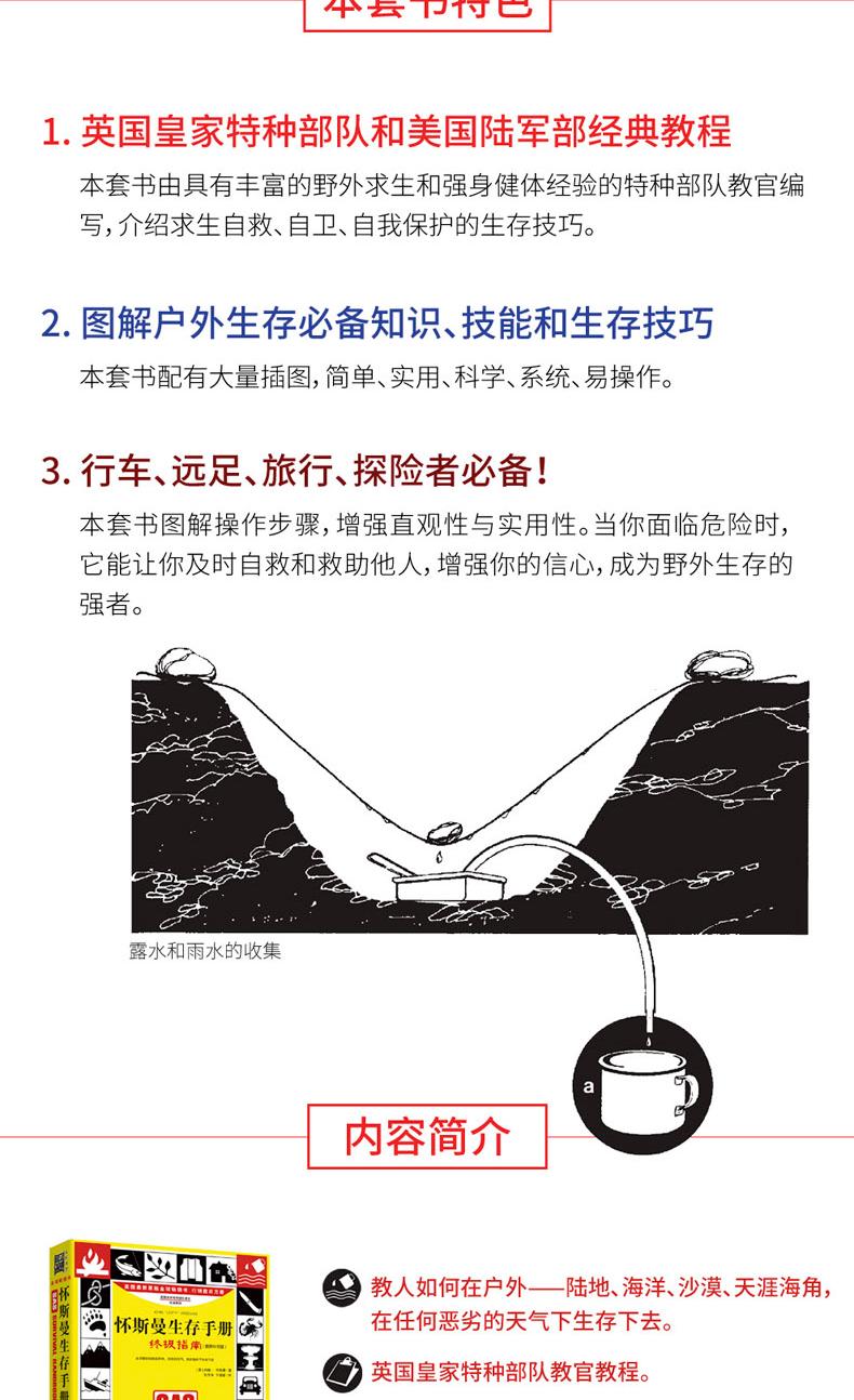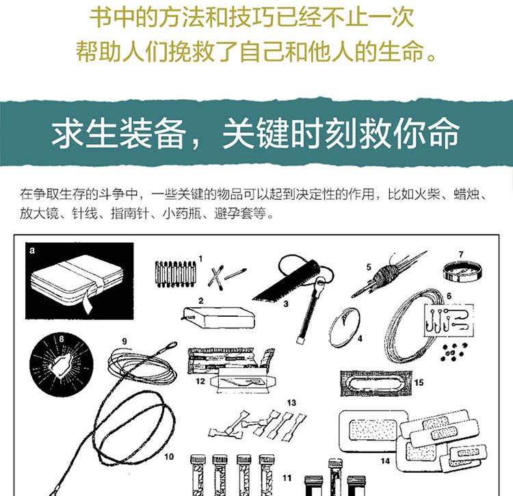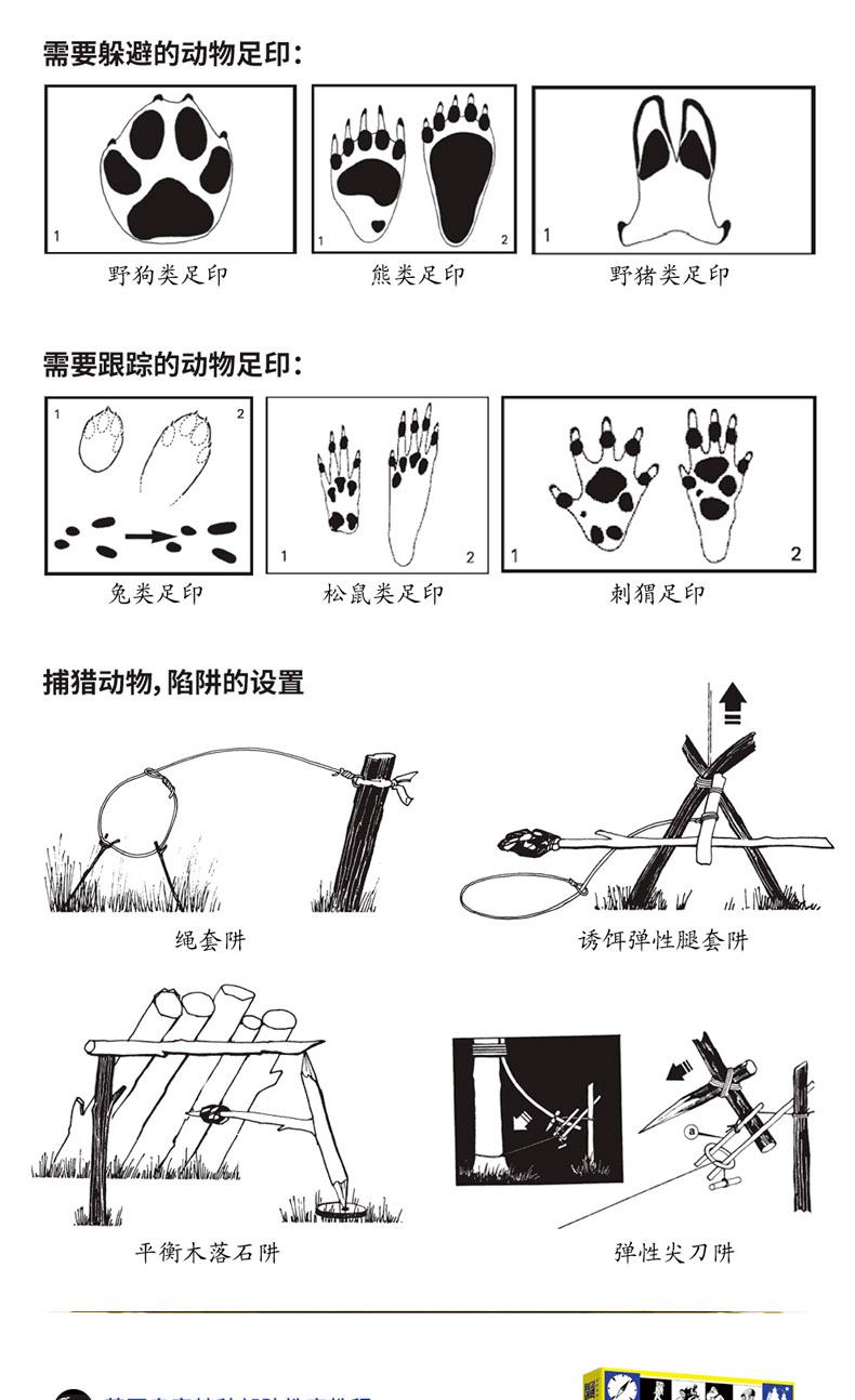 本書為英國皇家特種部隊絕境求生的秘密,是掌握現代人自救、自我保護的生存技巧。 書中永不過時的生存經驗、知識與技能,讓你無論何時何地遇到任何生存難題都能迎刃而解。 本書幾乎涵蓋所有戶外生存的解決方法,詳細講解各種戶外生存和自救技巧。 包括:求生裝備、如何發出求救訊號,如何辨認有毒植物,如何用刀片製作指南針,如何設置陷阱和捆綁獵物,如何捕魚,如何點燃潮濕的火柴,如何搭建天然帳篷,如何急救、逃生和救援等 。 針對水災、火災、地震等災難環境,講解如何控制自己的恐懼情緒,保持冷靜,靈活應對,並充分利用現有的資源脫離困境。 此外,書中也展示了許多求生場景和求生案例,並附有大量圖片,講解具體的操作步驟,增強了直覺性與實用性。