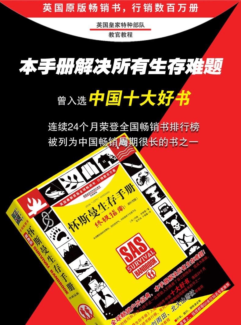 約翰•懷斯曼曾在陸軍特種部隊服役26年,以意志堅定、擅長野外求生術蜚聲軍內外,由此榮升皇家特種部隊(SAS)教官。 SAS是英國皇家軍隊精英,SAS戰鬥人員能在世界任何一個地方完成各種異常艱鉅的作戰任務,通常是在主力隔離的敵佔區進行小組作戰。 身為SAS教官,約翰•懷斯曼的學識、經驗和技能在野外生存界無人能及。 他以自己半生軍旅生涯的豐富經驗,撰寫了這部完整的求生教程,教你在任何地方、任何天氣、任何條件下生存下去。