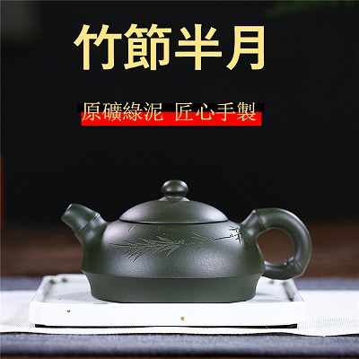 原礦綠泥手工荷葉壺