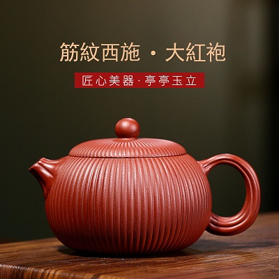 宜興手製小容量大紅袍西施紫砂壺100cc