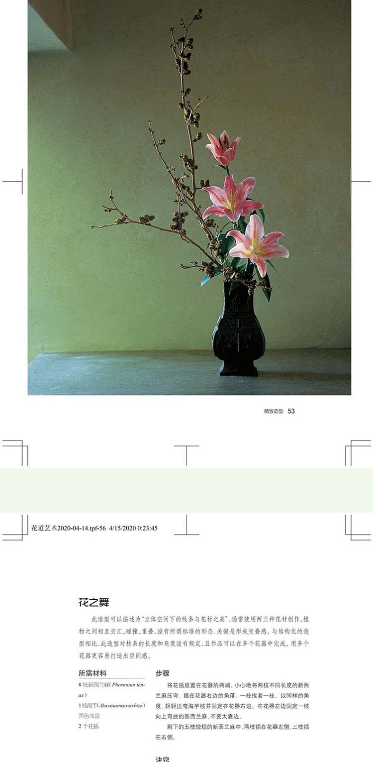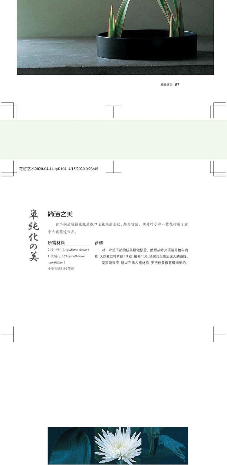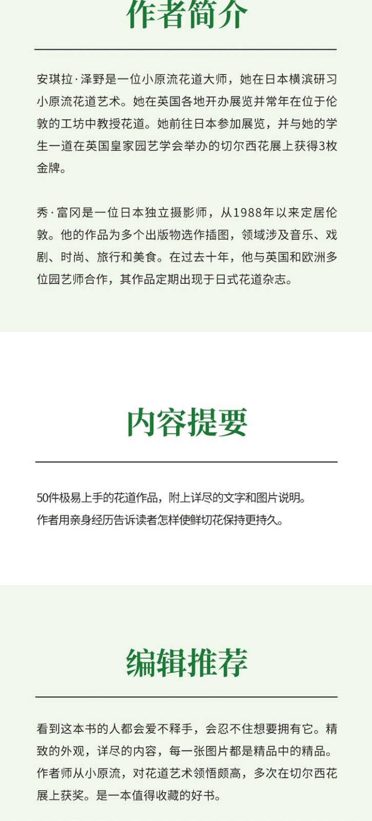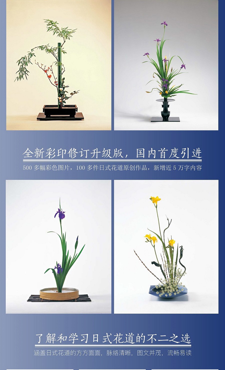 花道基礎介紹類圖書,2013年首次印刷,暢銷2萬餘冊,本書在前一版的基礎上進行了修訂。很好小原流花道大師傾力奉獻,詳細解讀50餘個作品造型及佈局。用現代的眼光來欣賞這項經典的藝術,領悟素樸自然契真的美學之境。相比西方的繁花簇錦,日式花道更偏向於營造出枯淡寂寥的意境,一根枯藤、一朵野花足矣。