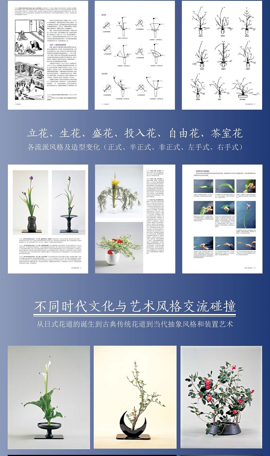 圖文賞析各種日式花道風格(立花、生花、盛花、自由花、投入花)的特色及造型技巧;