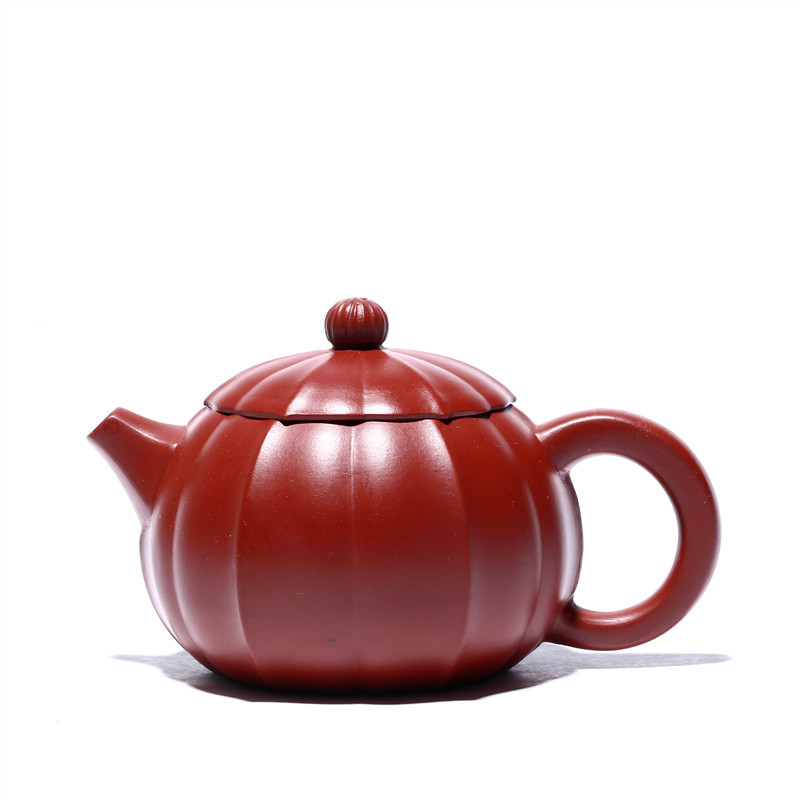 大紅袍南瓜瓣壺原礦紫砂仿古筋紋合菱壺