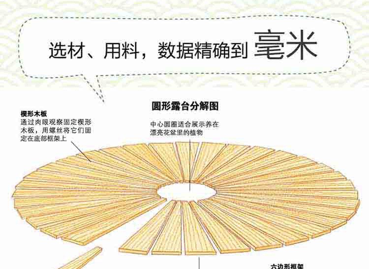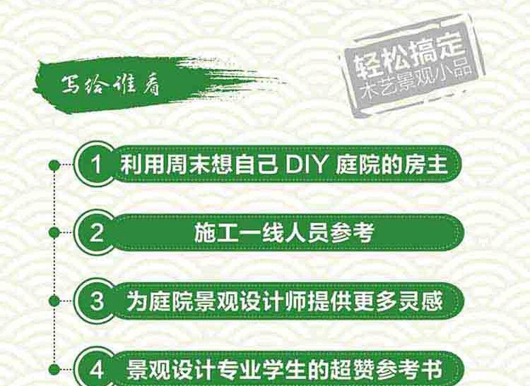 1. 本書深度剖析外具有創意的木藝景觀設計,從概念、造型、施工圖的多方位展示。