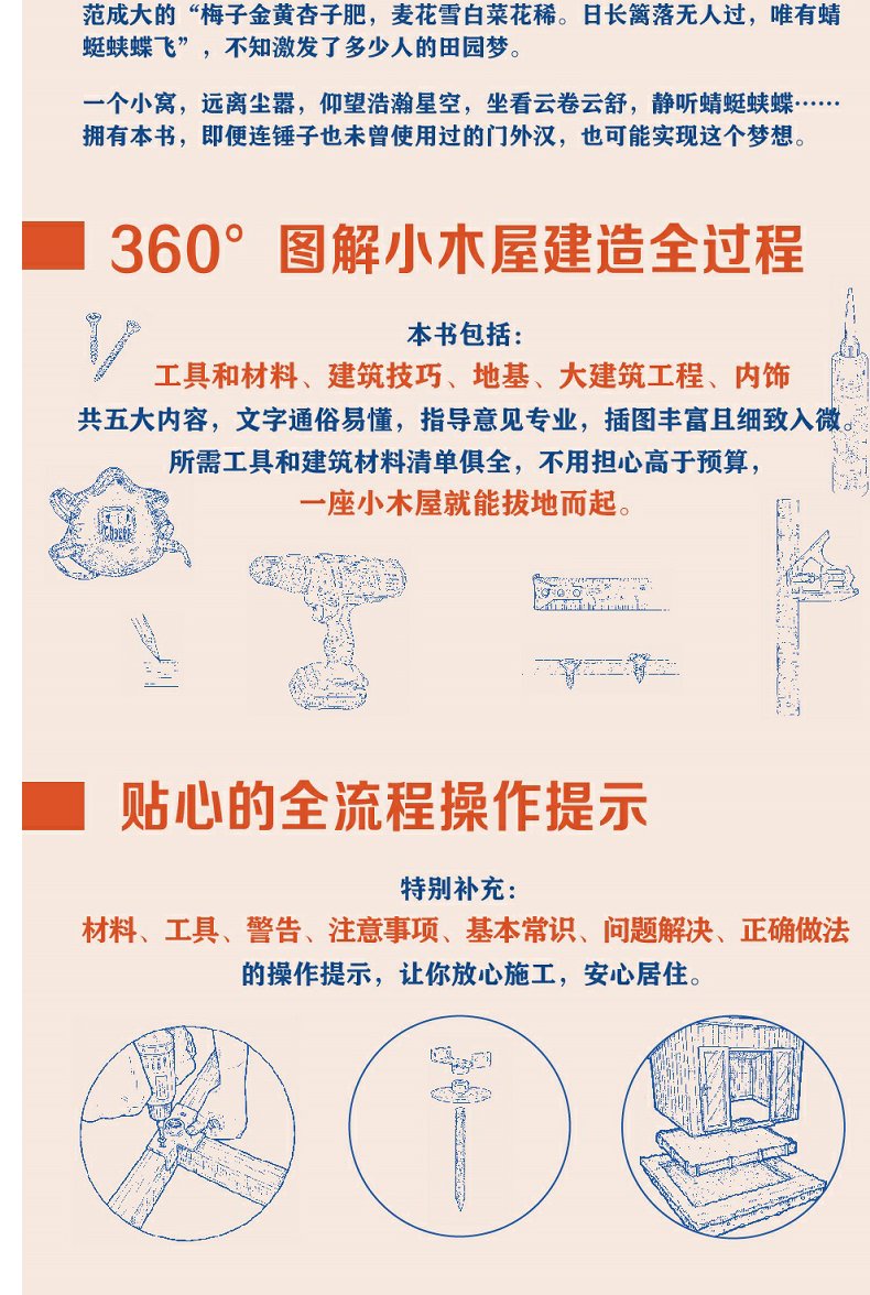 你敢想嗎——有一座自己的花園小屋,可以舒服地窩在裡面寫作、放鬆,甚至可以在星空下打個盹。本書將教你如何建造一座簡單而精美的小木屋,容易建造,看上去很不錯,並且整個建造過程能給你帶來快樂的體驗。任何人使用此書都可以,即便你是DIY的新手也沒關係,這本書就像一個建築圖紙,引領你一步一步完成整個工程。