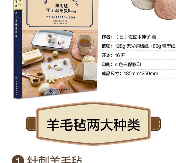 手工羊毛氈是指將羊毛通過水洗或者針刺的方法氈化,結合不同顏色的搭配、不同造型,可以製作成羊毛氈包、帽子、圍巾、玩偶等。本書是日本羊毛氈協會理事佐佐木伸子的羊毛氈經典教科書的修訂版本,書中詳細地展示了羊毛氈氈化的兩種基礎技法,每種技法都有對應的製作技巧解析,並用製作範例演示瞭如何做出各種細節。本書是羊毛氈初學者和愛好者不可多得的基礎教科書,即便毫無經驗的讀者也可以輕鬆完成,可以從中發現手工羊毛氈的更多魅力和快樂。