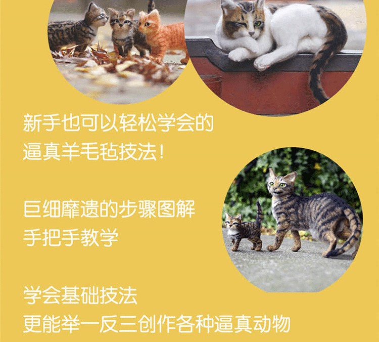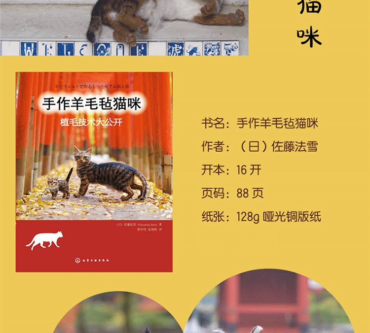 *近幾年羊毛氈玩偶製作是手工圈裡熱門話題,隨著喜歡的人越來越多,為了讓更多的新手不走彎路,本書以貓玩偶為案例對逼真動物羊毛氈製作進行了詳細的圖文講解。從材料到工具,到每個部位的製作步驟、細節打造技巧,都用詳細的文字和圖片展示,把作者多年來的動物高端定制經驗毫無保留分享給讀者。本書適合想學習製作羊毛氈的新手學習參考,通過一本書成為羊毛氈手工圈的高級型創作者。
