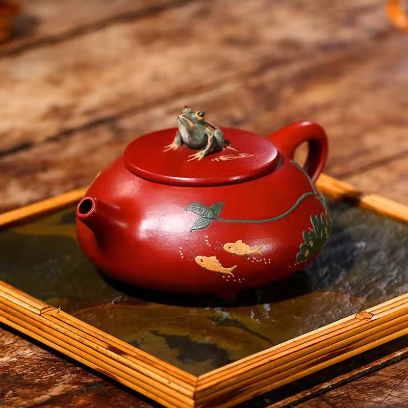 宜興原礦 石黃泥/ 大紅袍 荷塘月色紫砂壺