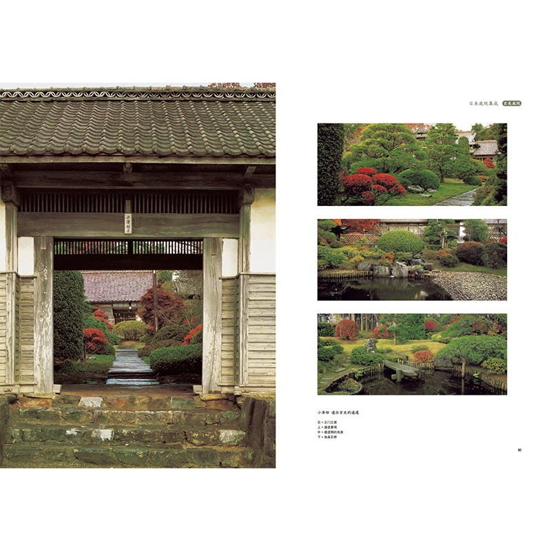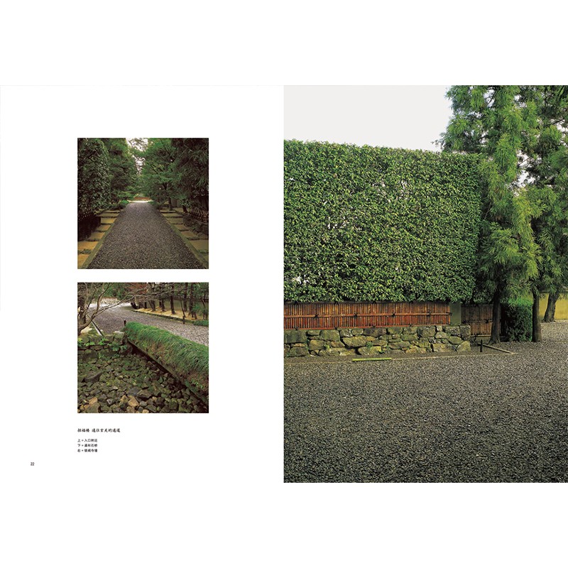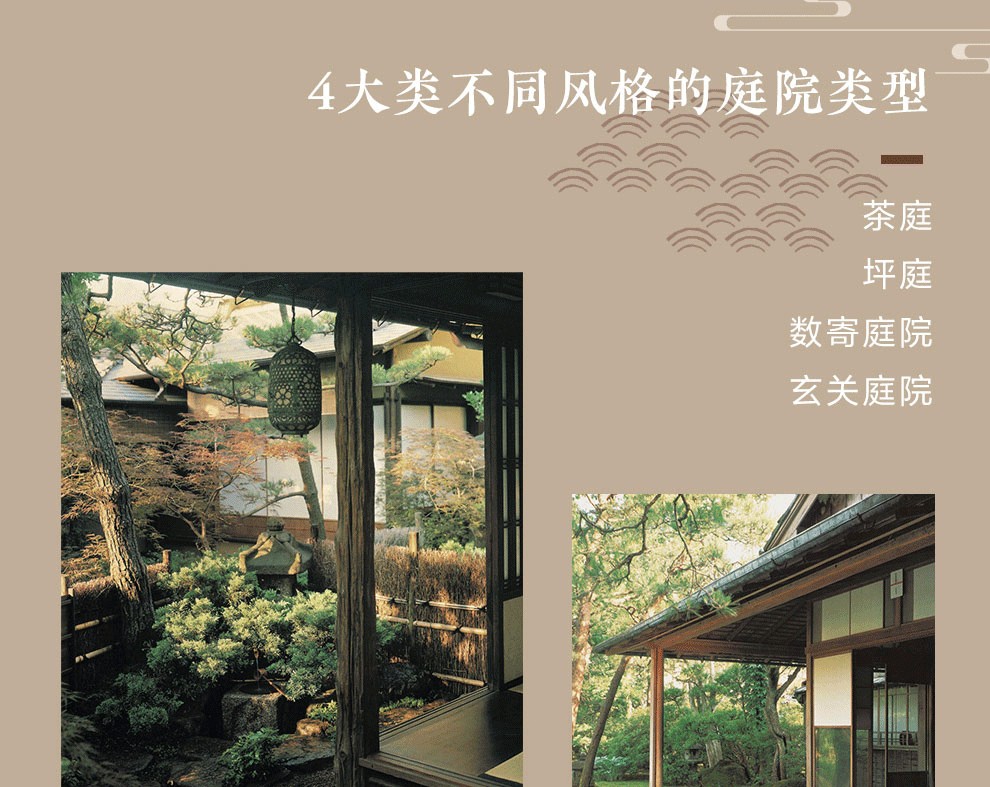 茶庭、坪庭、數寄庭院、玄關庭院,本系列包含四大類不同風格的庭院類型,囊括日本造園藝術的精粹。 從歷史名庭到融合現在設計元素的新型庭院,書中大量的經典庭院象徵了嚮往自然、追求本真的造庭理念。 不論是過去還是現在,日本庭院始終是洗滌心靈之所。