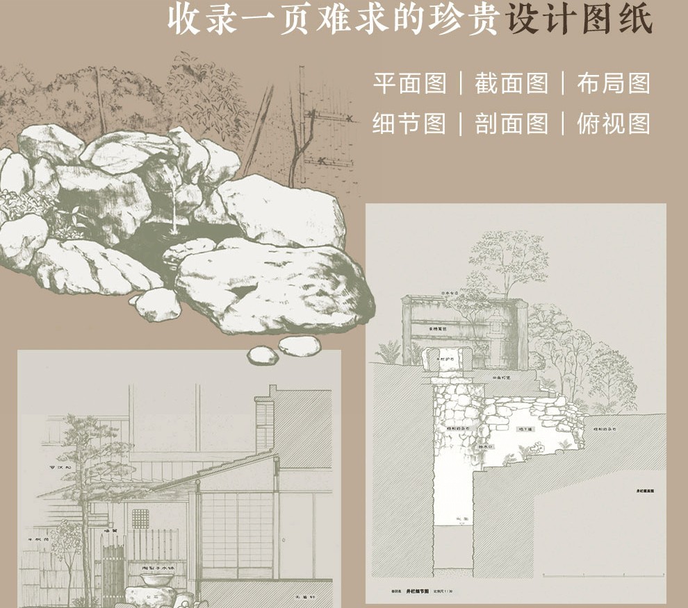 書中既收錄有高清實景圖,又滿載平面圖、剖面圖、佈局圖、細節圖等各種珍貴設計圖紙,在展示了真實庭院景觀的同時具有參考價值,對於現代建築設計而言是不可多得 的珍貴資料。