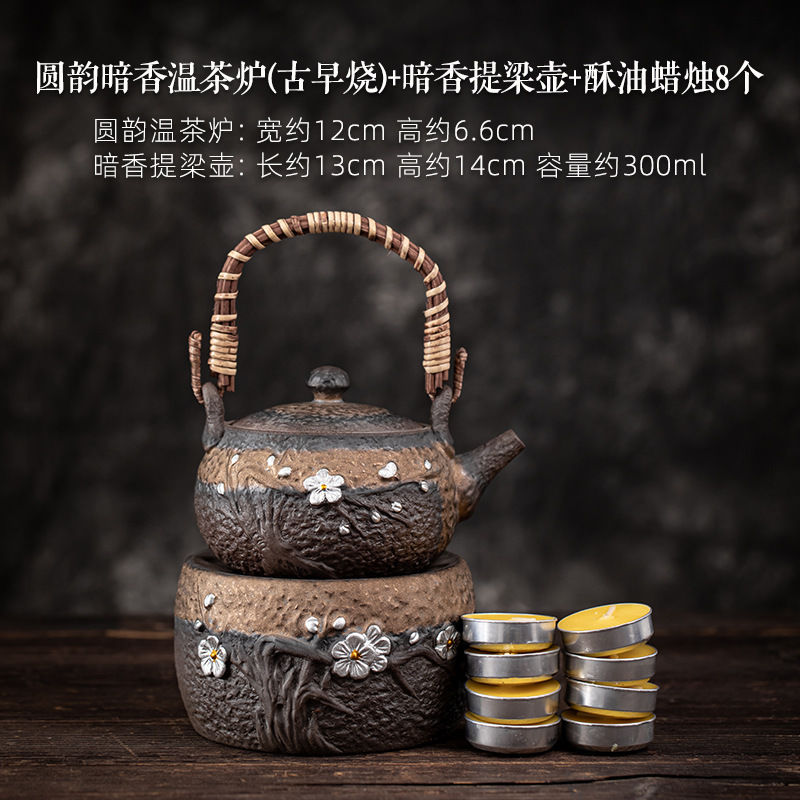 日式手工粗陶鐵釉籐編提梁壺(300cc)