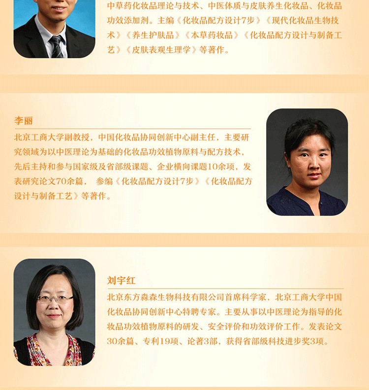 本書內容豐富,兼具理論性和實用性,可作為化妝品專業本科生的教科書、化妝品配方師的指導書、化妝品相關專業人員的參考書,同時可作為化妝品功效植物原料研發人員的培訓教材。