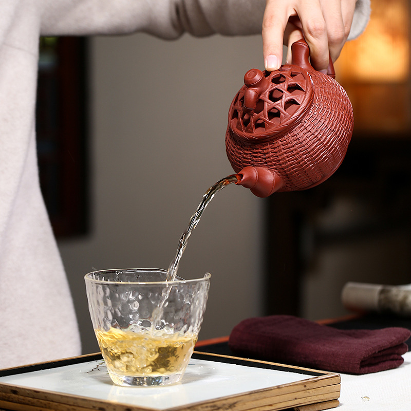 宜興原礦大紅袍荷塘月色紫砂壺【禮盒包裝,破損免費補寄】