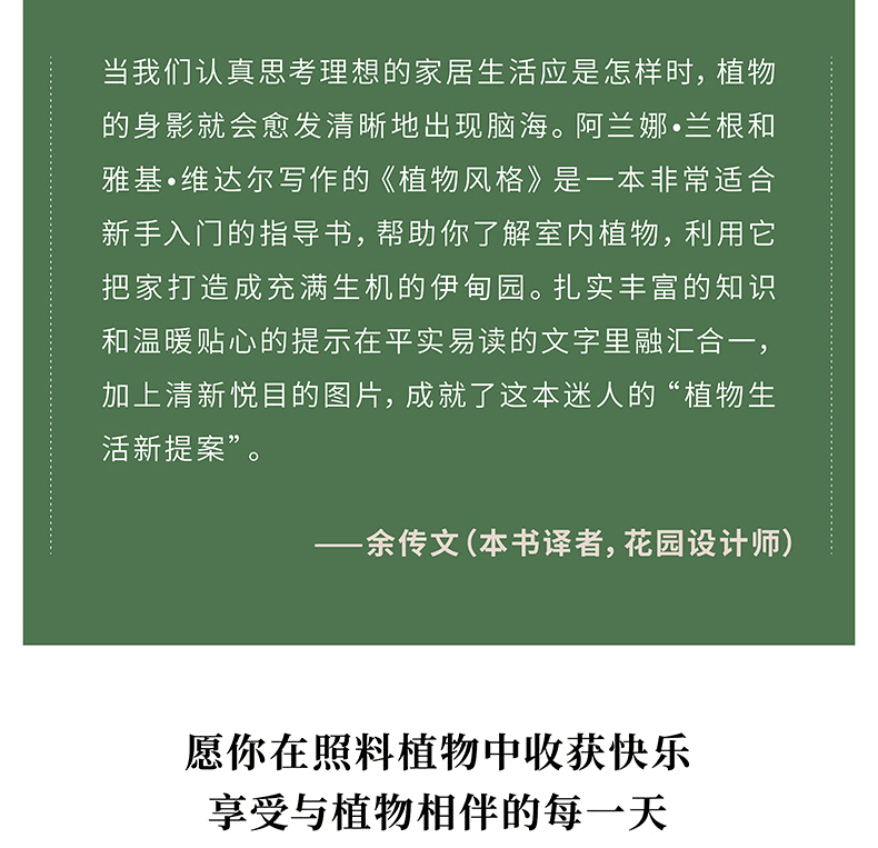 如何根據空間大小選擇合適尺寸的植物,不同類型的植物對空間風格的塑造有哪些影響,植物與盆器的搭配法則和禁忌……關於這些問題的答案,全可以從書中找到。