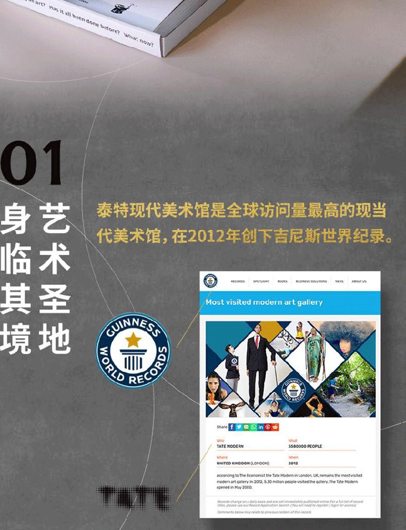 泰特現代美術館是全球最大的、最受歡迎的美術館之一,與倫敦眼、大笨鐘、白金漢宮、大英博物館等齊名的倫敦著名地標,被譽為「藝術史的分水嶺」。 自1917年當代藝術誕生之初,泰特現代美術館便前瞻性地開始收藏世界現當代藝術作品,百餘年過去,泰特見證了當代藝術的一個多世紀的發展歷程,如今它已擁有近8萬件現當代藝術藏品,收藏宏富,是觀賞世界當代藝術的絕佳去處。 2012年,泰特創下了全球現當代美術館最高訪問量的吉尼斯世界紀錄。作者傑西卡曾在此講授當代藝術入門課程,以10個問題解讀當代藝術的視覺密碼,揭開當代藝術的神秘面紗。