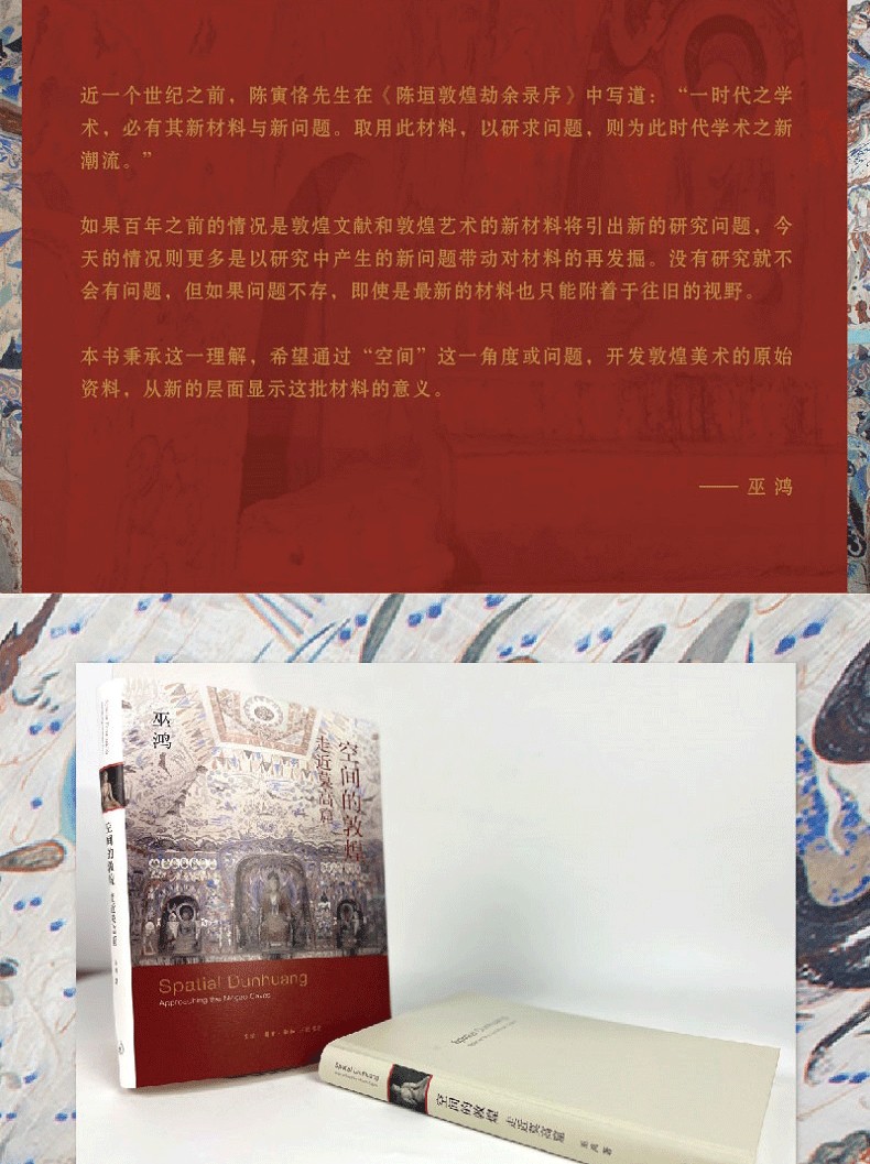 近一個世紀之前,陳寅恪先生在《陳垣敦煌劫餘錄序》中寫道:“一時代之學術,必有其新材料與新問題。取用此材料,以研求問題,則為此時代學術之新潮流。”如果百年之前的情況是敦煌文獻和敦煌藝術的新材料將引出新的研究問題,今天的情況則是經多幾代學人的積累,基礎性調查和材料整理已相當充盈,需要更多以研究中產生的新問題帶動對材料的再發掘。巫鴻的這部新作通過“空間”這一角度,調動讀者自身經驗,從敦煌城一路向西,來到鑿有數千洞窟的鳴沙山;面對撲面而來的崖壁展開歷史想像,並以人的身體為尺度,進入不同時期的洞窟空間,感受洞窟的功能、性質和參觀方式的明顯變化。在洞窟中,身體參與感知雕塑和系列壁畫以及它們之間的關係,最終目光視線落在單幅畫面上,進入畫面內部空間,完成精神層面的觀看意義。因此,書中雖然廣泛借助和徵引了關於敦煌研究的原始材料,卻試圖從新的層面顯示它們的意義,激發讀者調動自己的身體和眼睛,在閱讀中開啟一趟敦......