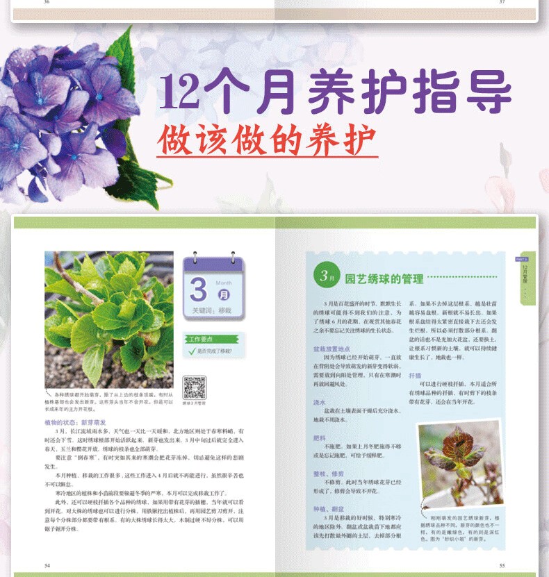 不僅介紹了繡球的起源與歷史背景,更逐一品種詳解了栽培、種植、修剪、扦插、病蟲害等一系列容易遇到的問題,讓你的花兒得到更好的照顧,展示靚麗的姿態