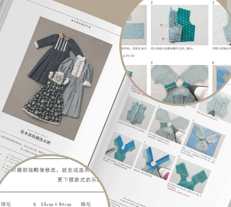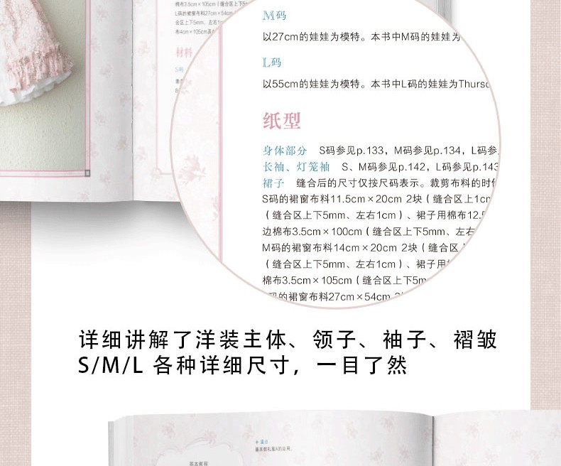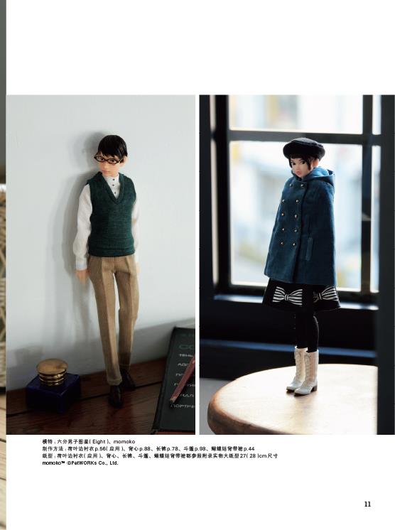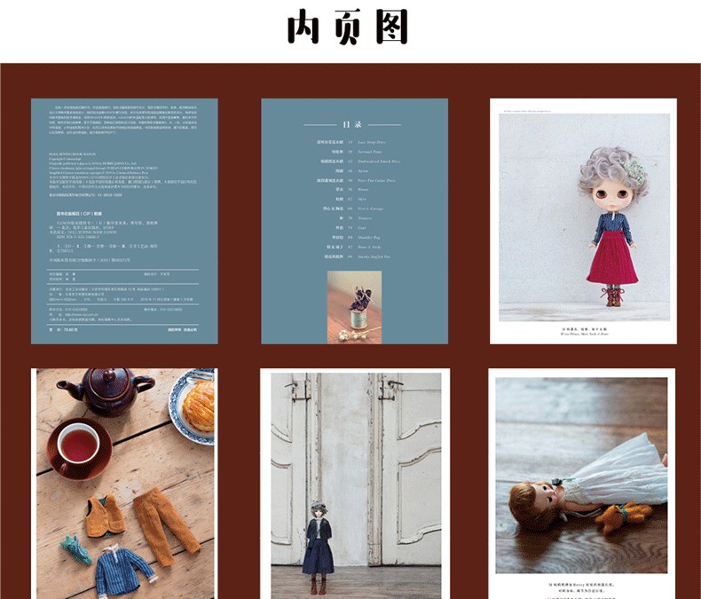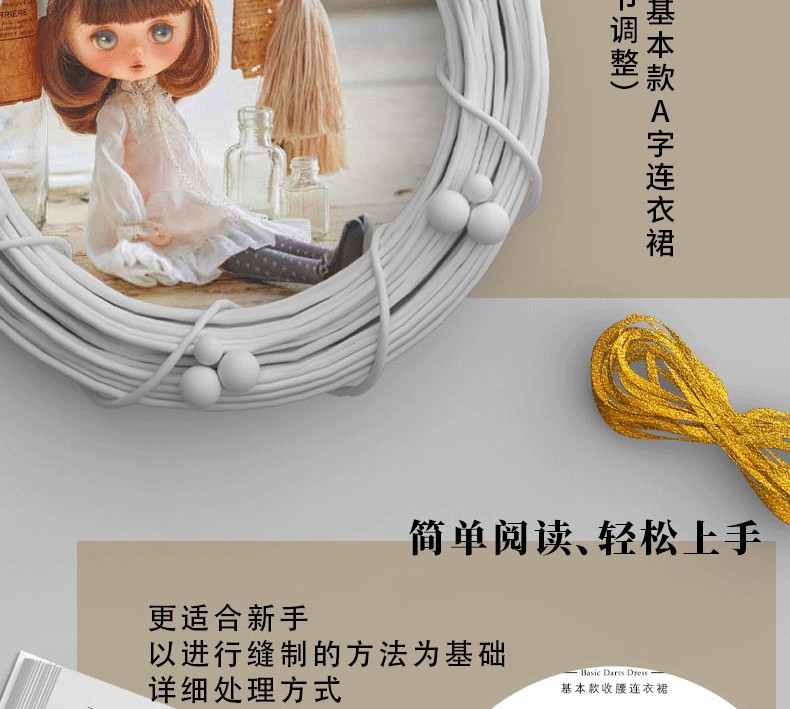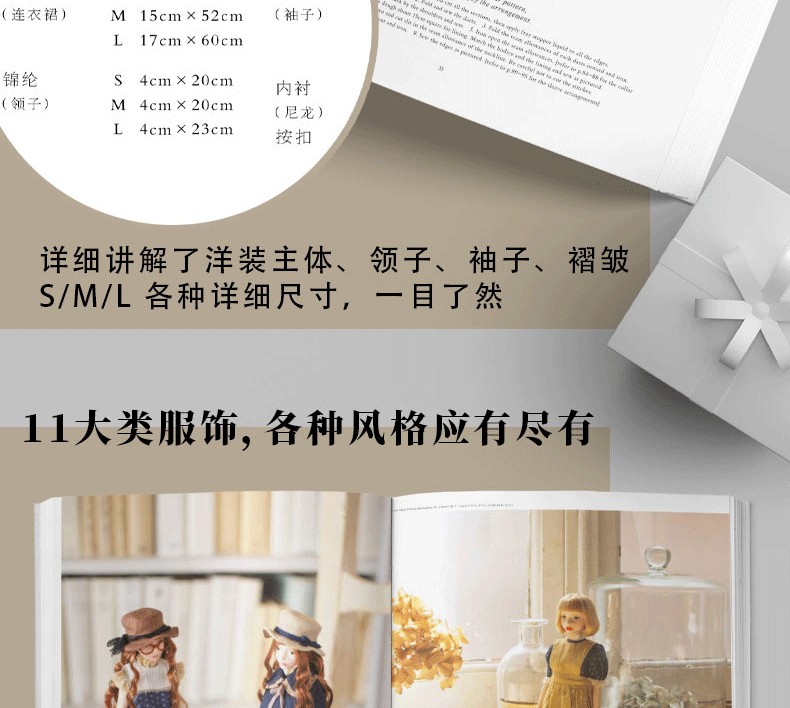本書是一本非常詳細的娃衣教科書,全部是彩圖展示製作過程,六種常見娃娃尺寸,有原大紙型。包括連衣裙、背帶裙、襯衣、西裝外套、長褲、背心、斗篷、帽子等。內容有做娃衣的工具材料、熨斗和縫紉機的使用方法、手縫技法、紙型的描畫方法和符號說明等基礎知識,是一本作品豐富、內容全面的娃衣書籍。