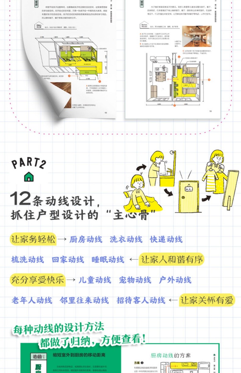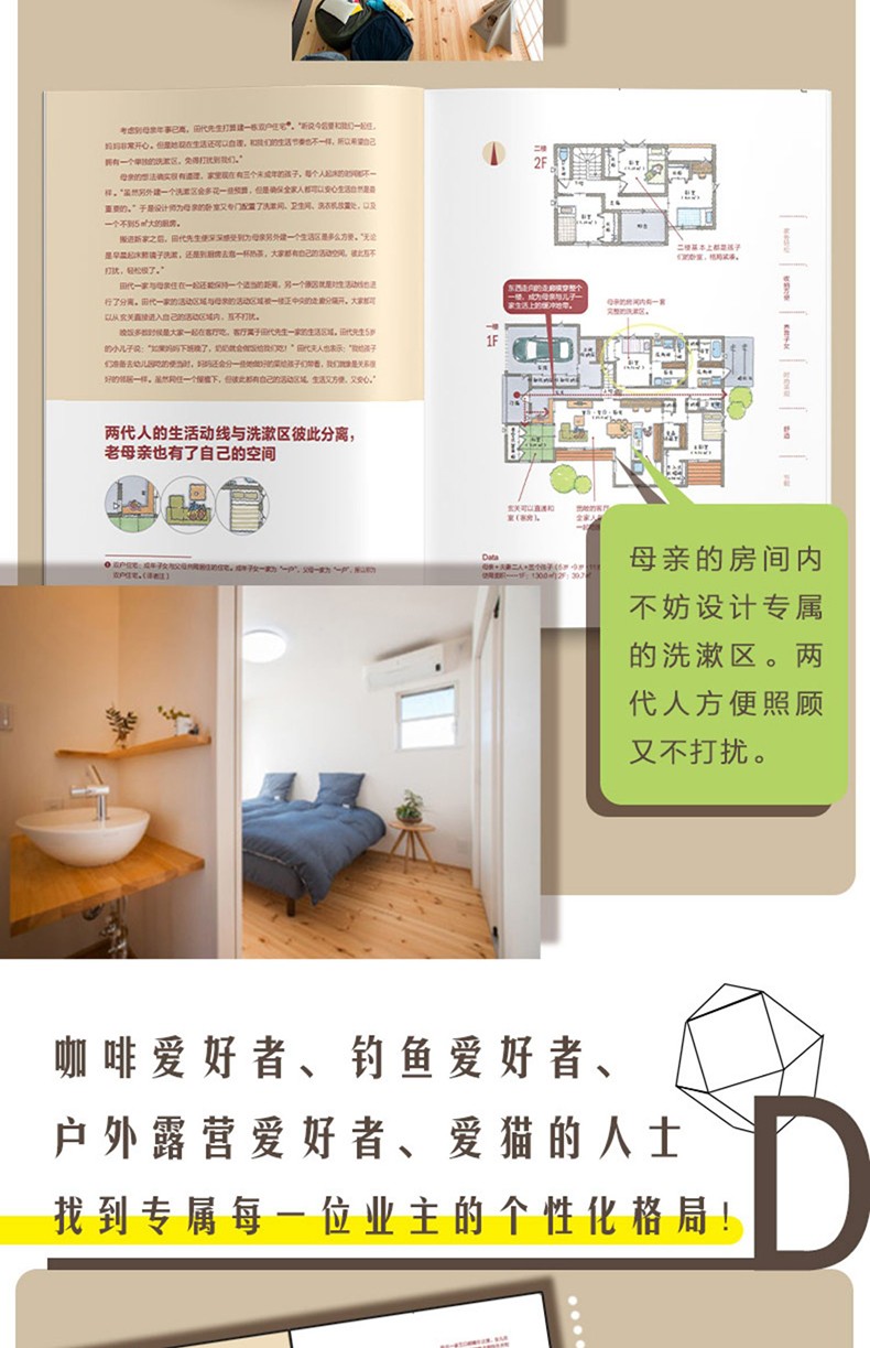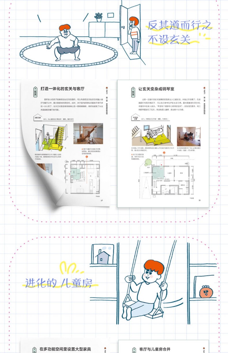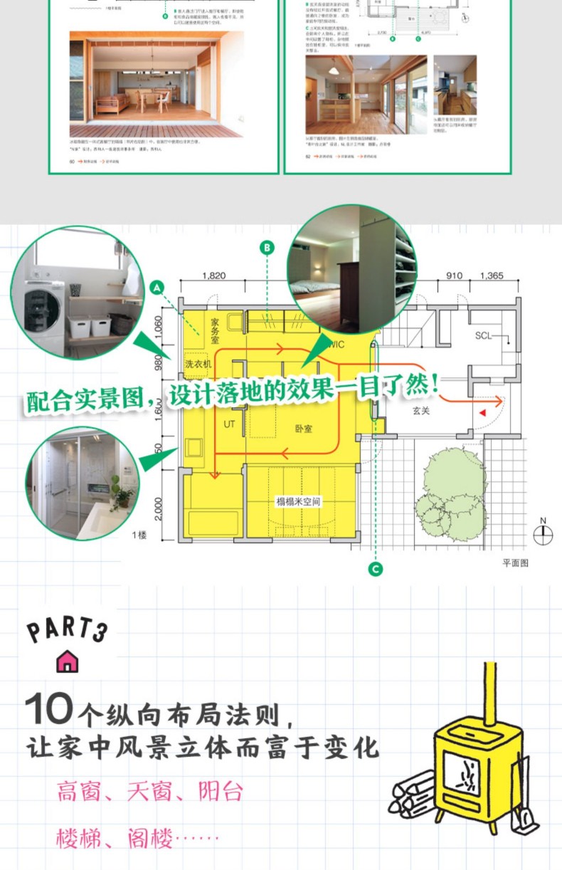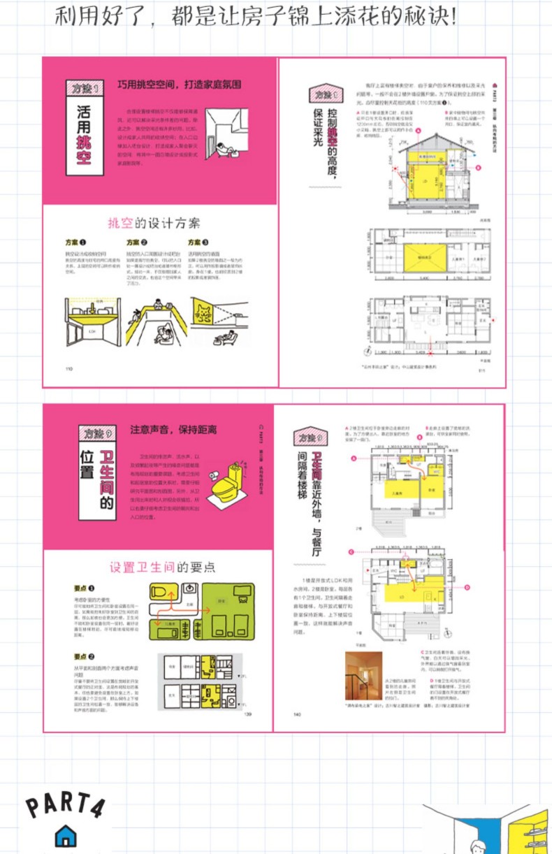 以全圖解的方式,讓無法親臨住宅內部的讀者們能直觀體會到空間內的感受,向讀者展示了每一個手法的精巧構思與落成實景。