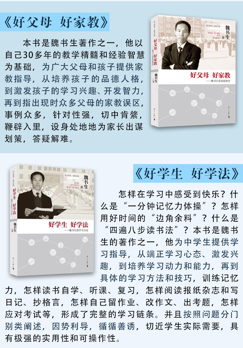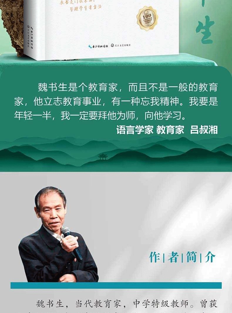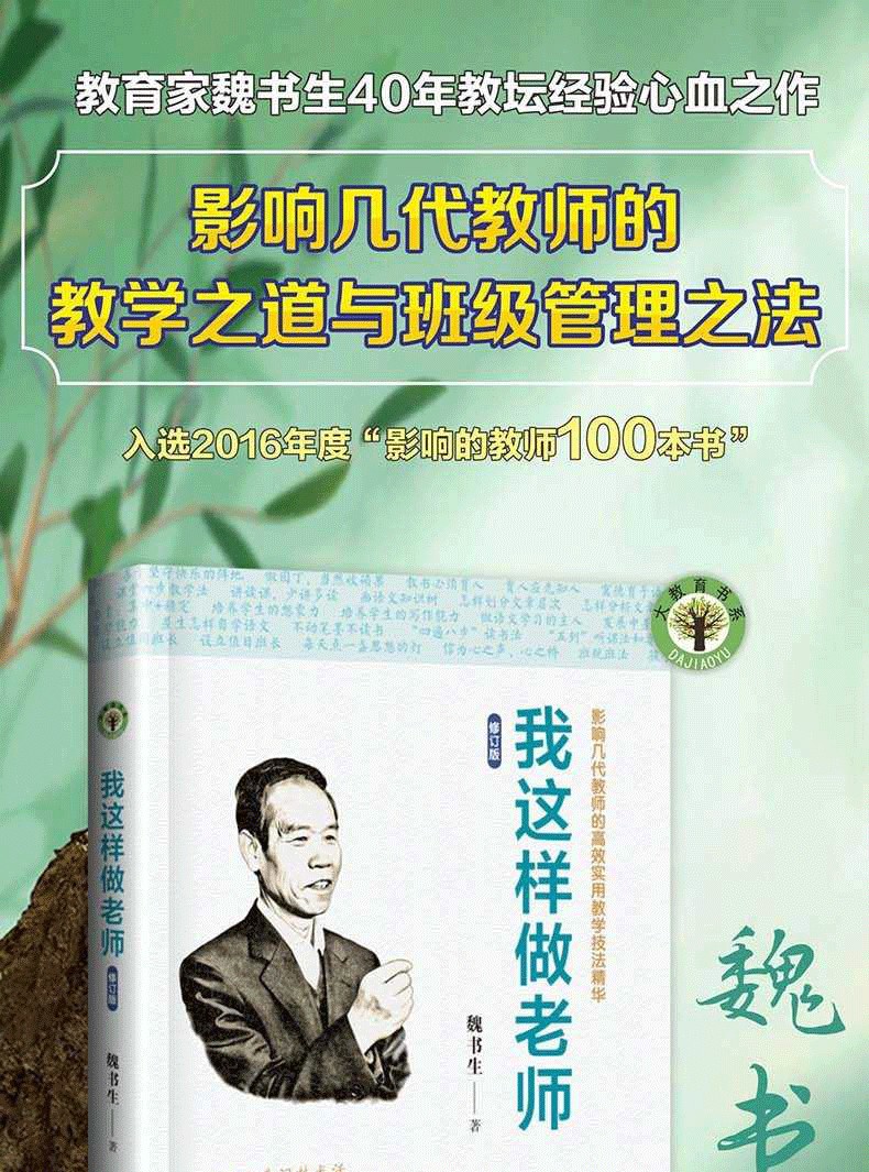 魏書生,全國特級教師,長期從事教育教學研究,當了22年班主任、24年校長、13年局長,出版專著及主編出版書籍50餘本;身兼40多項社會兼職,講學足跡遍及全國31個省市自治區和台灣、香港、澳門地區,以及馬來西亞、新加坡、俄羅斯,作報告2300多場,聽眾逾200萬人次;以“學習、工作、盡責、助人是享受”的苦樂觀引起人們廣泛共鳴。他對國家、對人民滿懷感恩之心,用一點一滴多做實事的方式,享受著民主科學、「松靜勻樂」、育己育人的快樂。