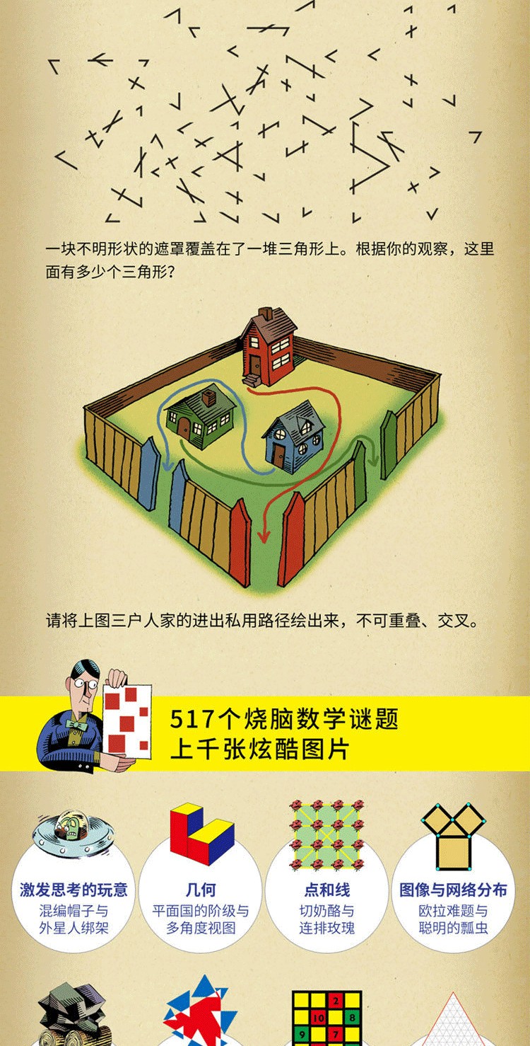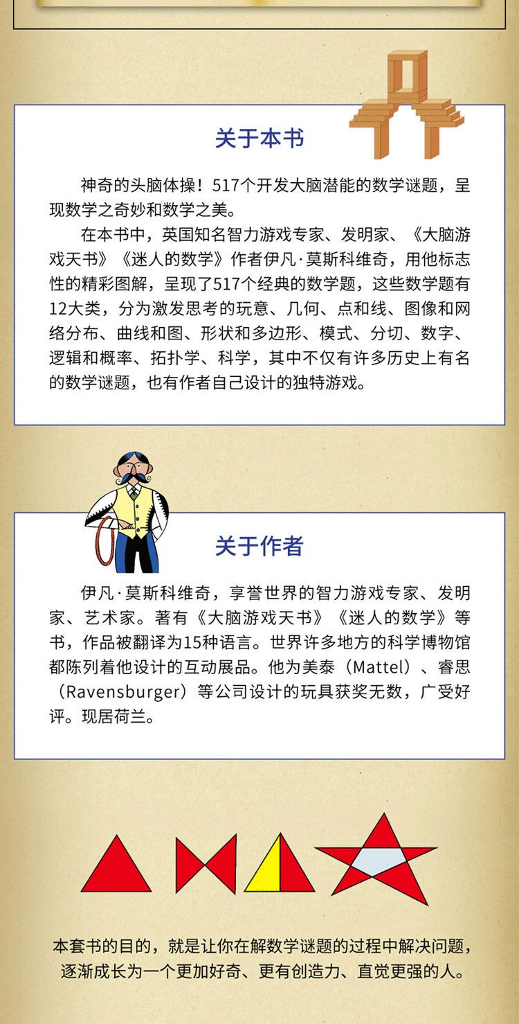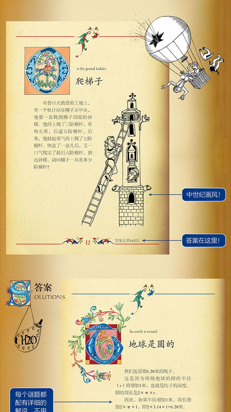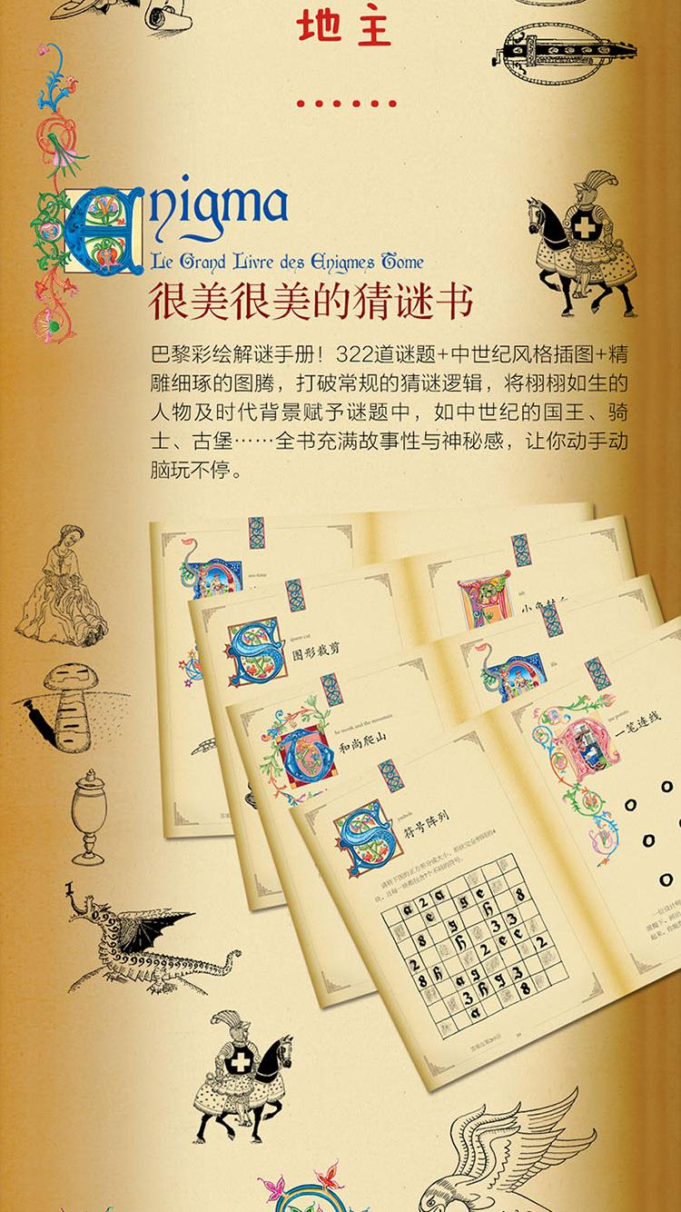巴黎彩繪解謎手冊! 激發孩子數學興趣入門書。 172道謎題+200幅中世紀風格插圖,打破常規的猜謎邏輯,將栩栩如生的人物及時代背景賦予謎題中,如中世紀的國王、騎士、古堡……故事性與神秘感相結合, 讓你動手動腦玩不停。 開發腦力、創造力;提升想像力、鑑賞力。