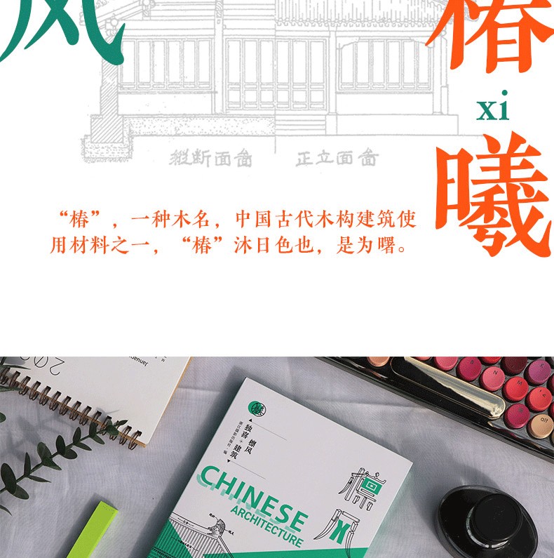 檁風/椿曦 【共2冊】梁思成古建手稿圖手帳本 獨喜建築 中國傳統文化建築筆記本 營造法式