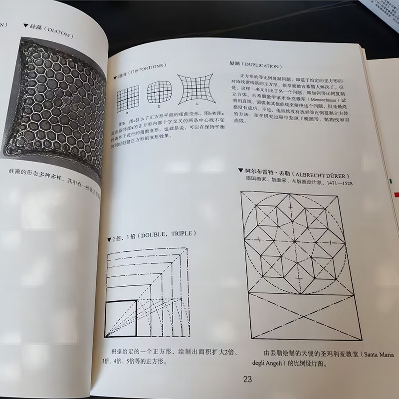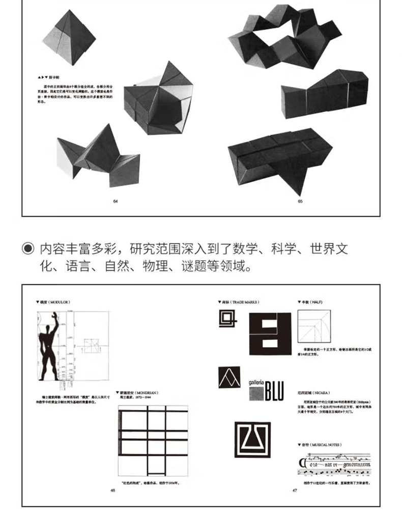 正方形由相等的4條邊和4個頂角構成,簡潔之中蘊藏著無限的神秘,可以變幻出一系列非常有趣的圖形,如和諧、美麗的矩形。其中,長、短邊的比例被認定為符合審美標準的矩形,即“黃金比例的矩形”,正是以正方形為基礎製作出來的特殊矩形。這個特殊矩形沿著黃金比例的推演關係最終連接而成的一條美麗的螺旋曲線在數學領域中被稱為對數螺旋曲線,它也是隱藏在自然形式法則中的一種特別的螺旋曲線。也就是說,對數螺旋曲線不僅存在於紙面的數學推演中,也存在於自然界中動物和植物的生長過程中。