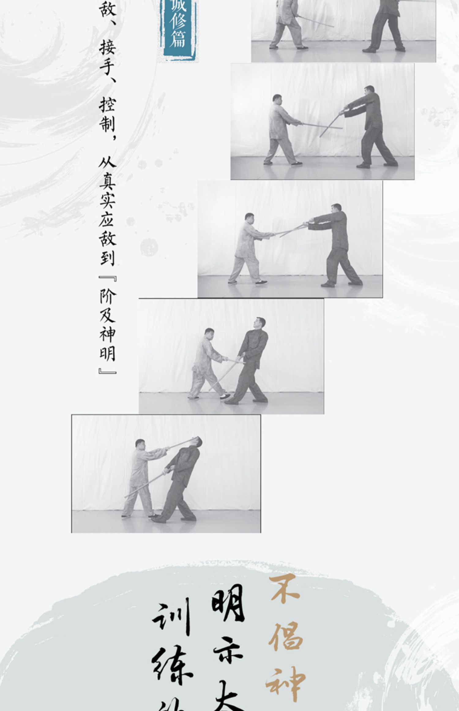 太極拳訓練的*階段,以實戰技擊為核心,以打法訓練為重點。對應的器械訓練是槍術,拳與槍的糅合,是功夫“階及神明”的重要階梯之一。