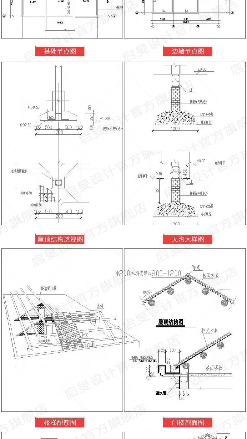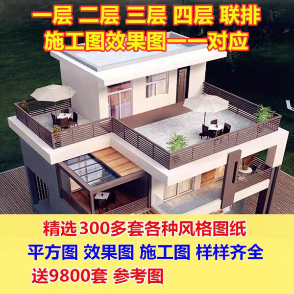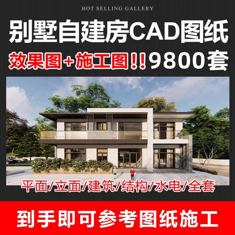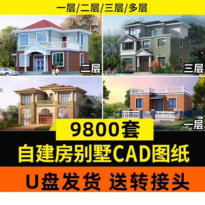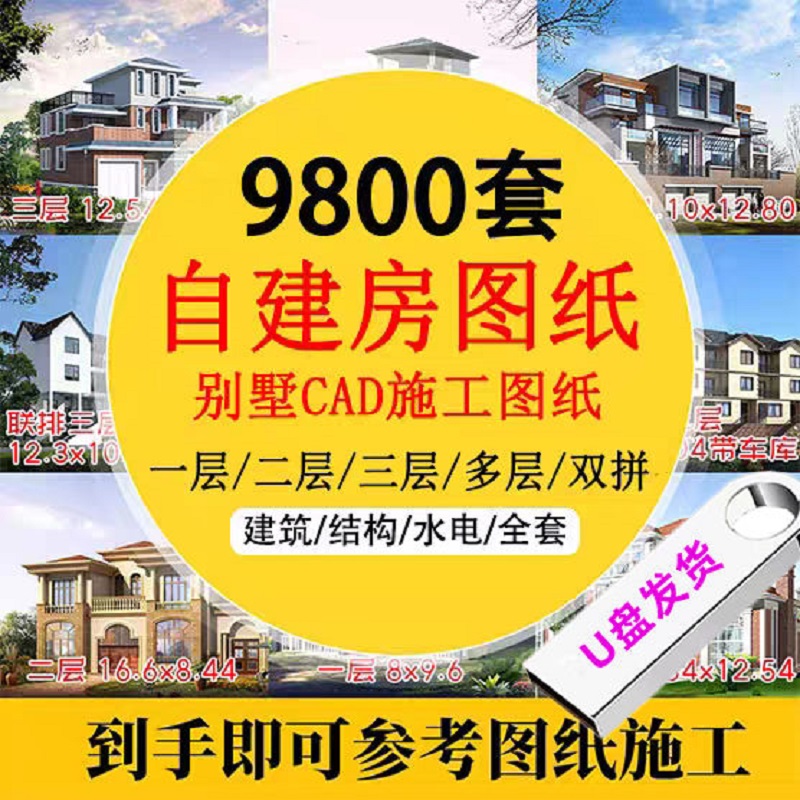 新農村別墅設計9800套 CAD施工圖紙U盤64G 自建房一層二層三層建築CAD施工圖建築效果圖