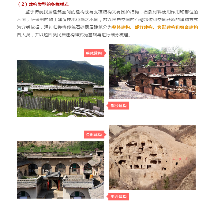 課題主持人匯集了二十五年在各地持續開展傳統民居和聚落調查的成果,詳細梳理了石質材料在民居建築中的使用部位和建構方式,對全國各地的石砌民居進行了類型上的劃分,形成了整體建構、部分建構、負形建構和組合建構四大類型,並在四大類型的基礎上依據主體支撐結構和牆體圍護結構,明確了詳細的石砌建造亞類。梳理了石砌民居建構類型與建造技術之間的對應關聯、與自然地理環境和氣候條件之間的對應關聯、與人文環境中建造技術匠作傳承之間的對應關聯,並標示出各種類型在地理範圍上的分佈狀況。