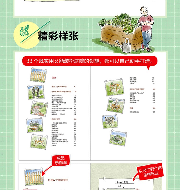 《庭院DIY:打造33個實用景觀設施》中為你收集了許多好點子,只需要你一定的耐心和動手能力,就能讓家裡有一座讓人歡喜的庭院。