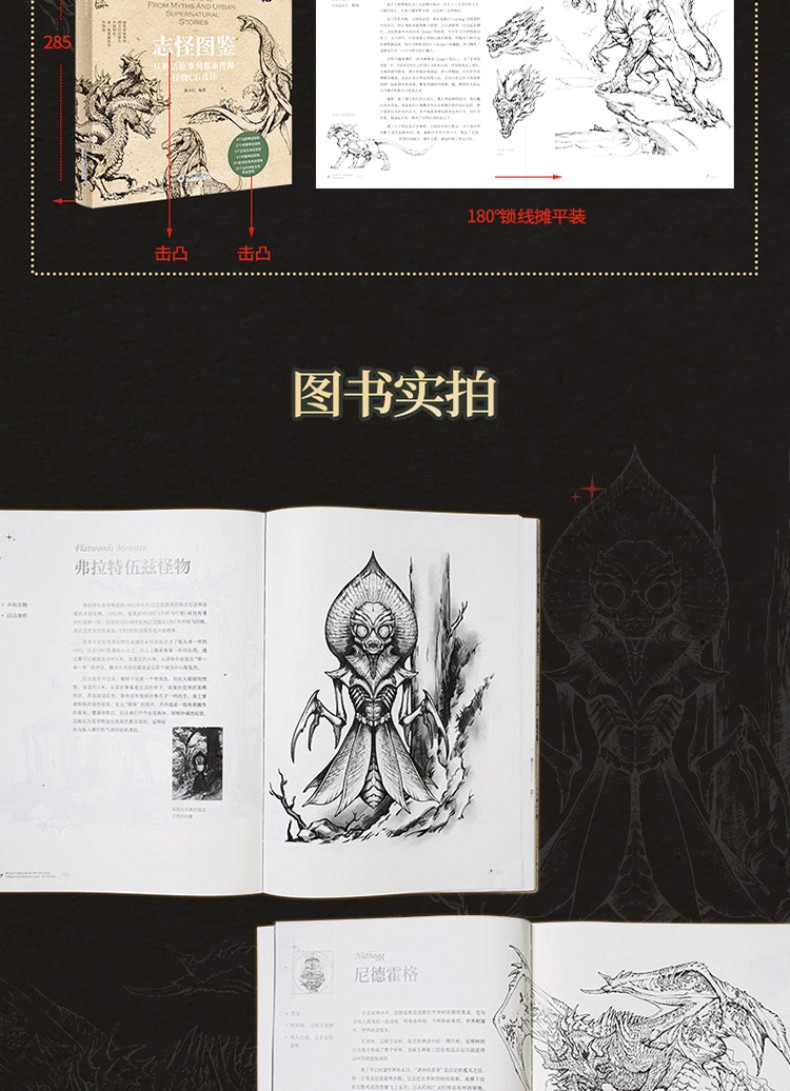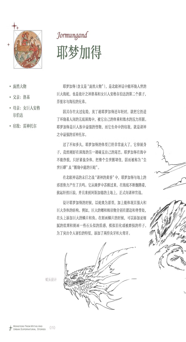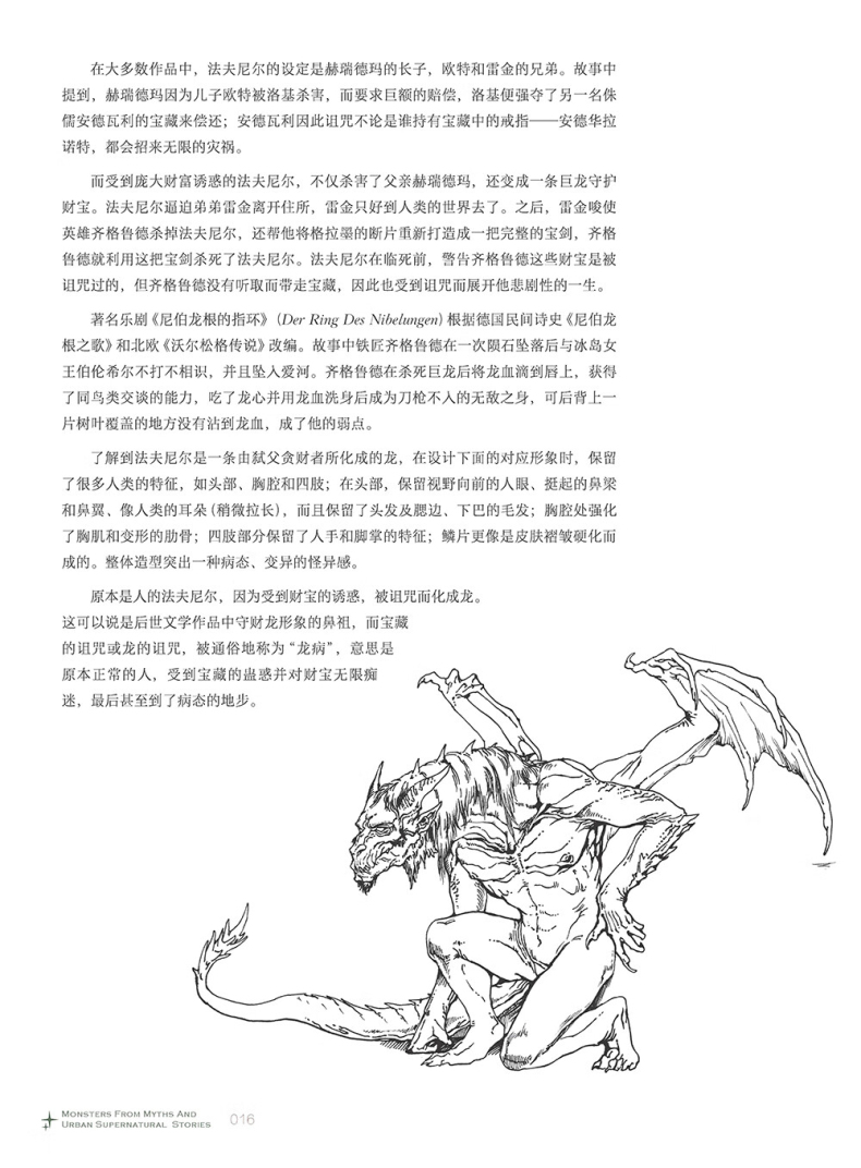 本書綜合各種神話傳說,集合了各種怪物,共分為7章,包含8個北歐神話怪物、17個希臘神話怪物、5個古埃及神話怪物、5個印度神話怪物、9個歐洲志怪傳說怪物 、33個當代神秘生物傳說怪物,以及個人作品展示。 書中羅列了各種怪物的特徵並呈現了與其相關的故事,可以讓讀者了解它們並遨遊於神奇的世界。