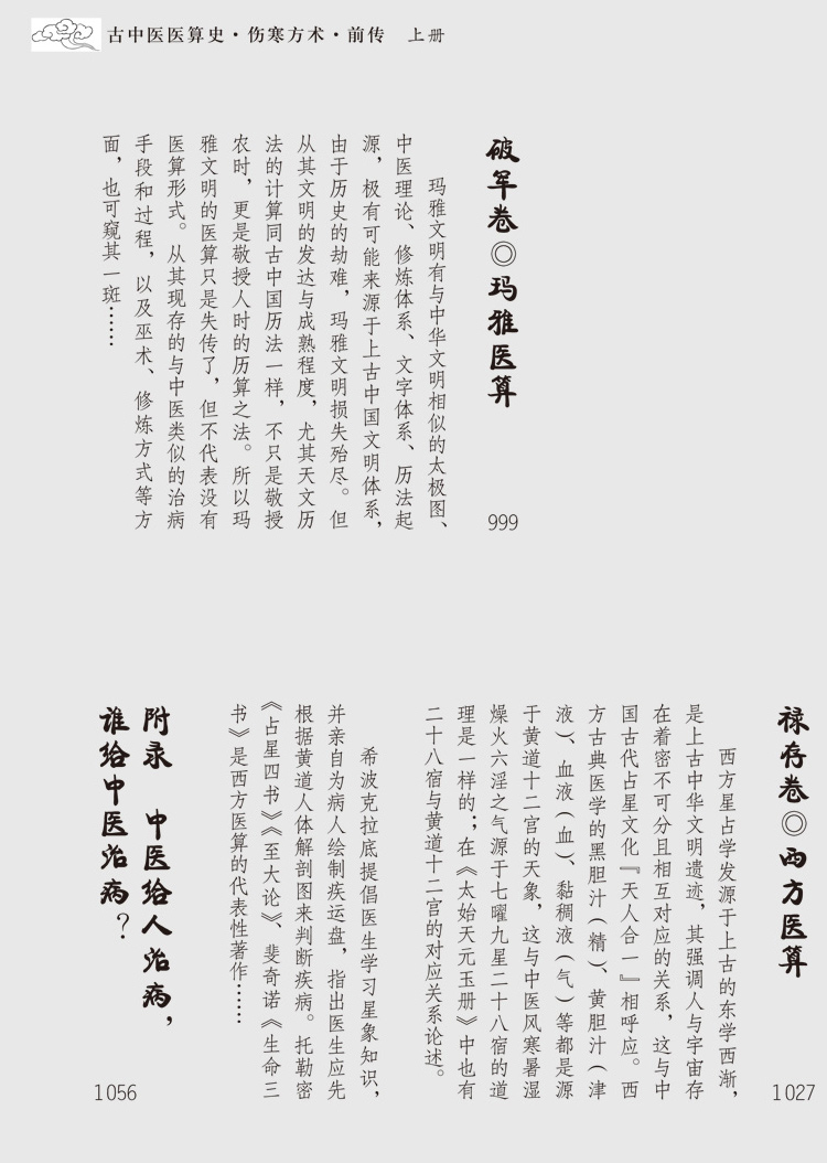 書名中的“醫算”“方術”“前傳”,是此書之關鍵。此書*的價值,就在於其強調中醫“數術”,而非其他學術書籍所關注的“老中醫經驗”。