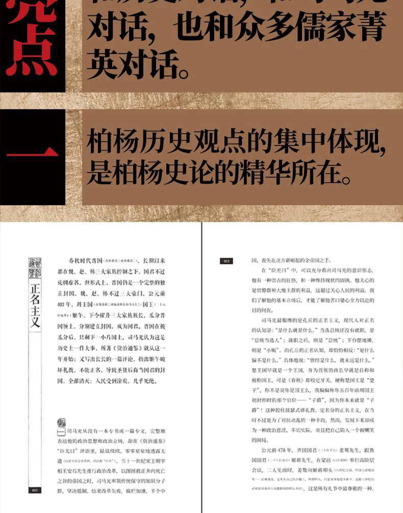 本書一事一議,小細節、大事件一目了然,簡明易懂、生動流暢。 柏楊作“柏楊曰”,其旨在引發讀者的獨立思考,不局促於中國傳統儒學價值觀的一貫窠臼,進而讀者在認知外部世界或面臨人生抉擇時,有足夠能力做出獨立、自主的 判斷。