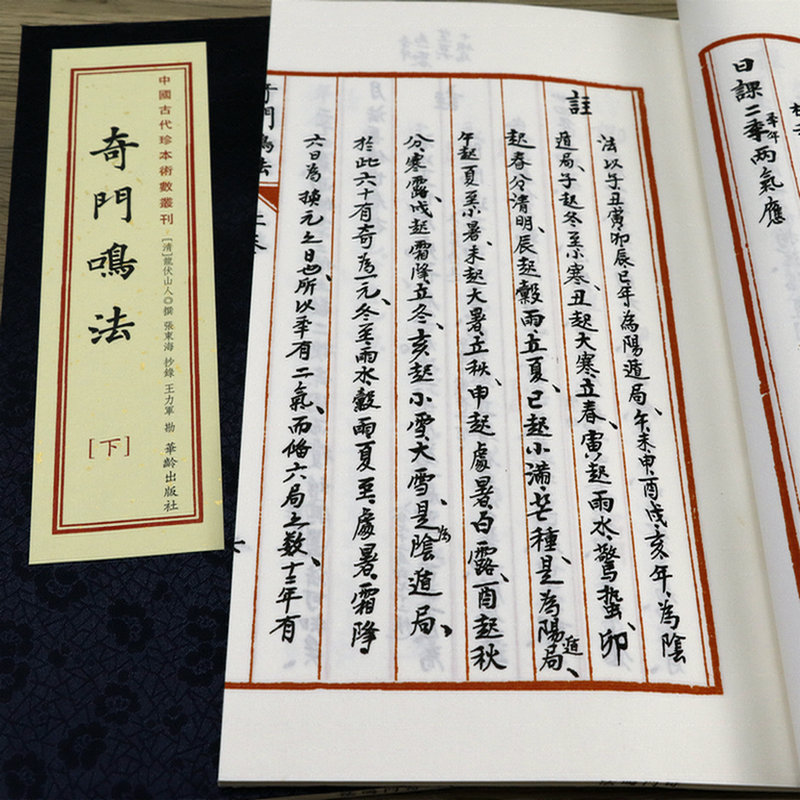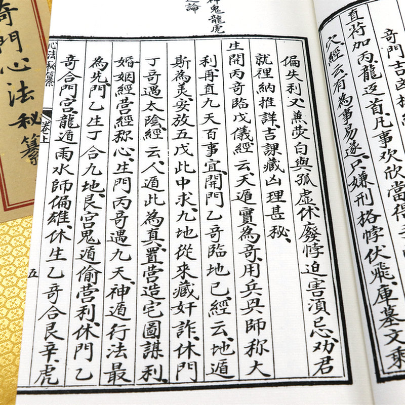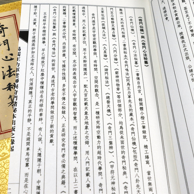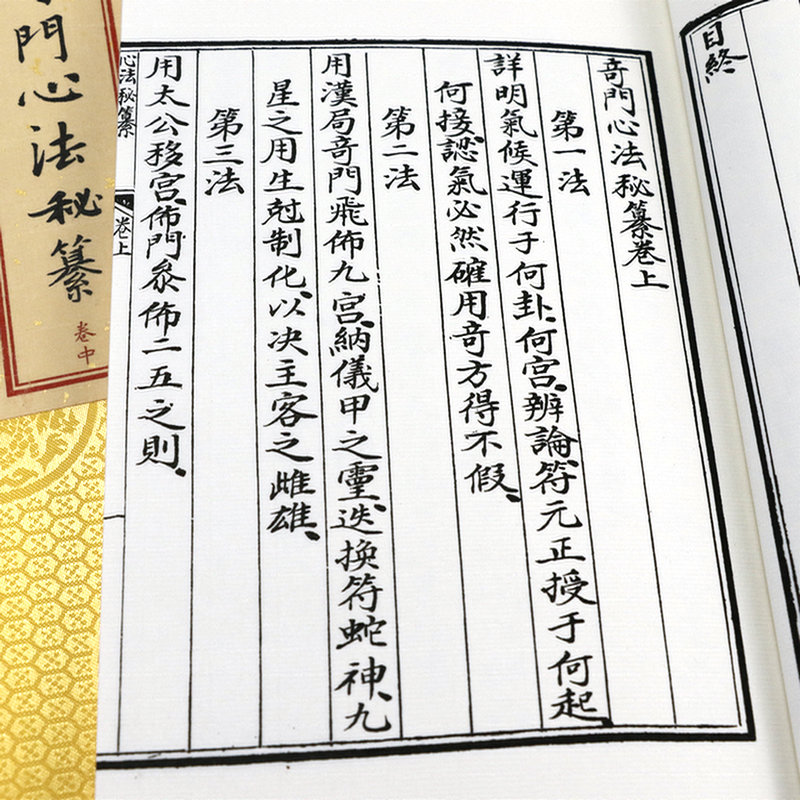 《奇門仙機》一書傳自內宮,*工綏寫,當世無兩,是為難得一見的奇門秘籍,為《奇門鳴法》的傳人王力軍先生所收藏。 是書包括《奇門八卦先天要論》、《八門宜忌動靜克應佔驗》、《八門分論》、《窮神明物章》等四個部分,均為奇門遁甲所未面世 的秘典。 奇門遁甲是中國古老的一種術數,也是一門傳統珍貴文化遺產。 「奇門遁甲」的意思是由「奇」門」「遁甲」三個概念組成。 「奇」是乙、丙、丁三奇;「門」是休、生、傷、杜、景、死、驚、開八門;「遁」即隱藏,「甲」指六甲,即甲子、甲 戌、甲申、甲午、甲辰、甲寅,「甲」在十幹中Z為尊貴,它藏而不現,隱遁於六儀之下。 在中國傳統文化中,奇門遁甲以易經八卦為基礎,結合星相曆法、天文地理、八門九星、陰陽五行、三奇六儀等要素,是我國預測學中集大成者、是易經Z高 層次的預測學,因此奇門遁甲自古稱為帝王學。