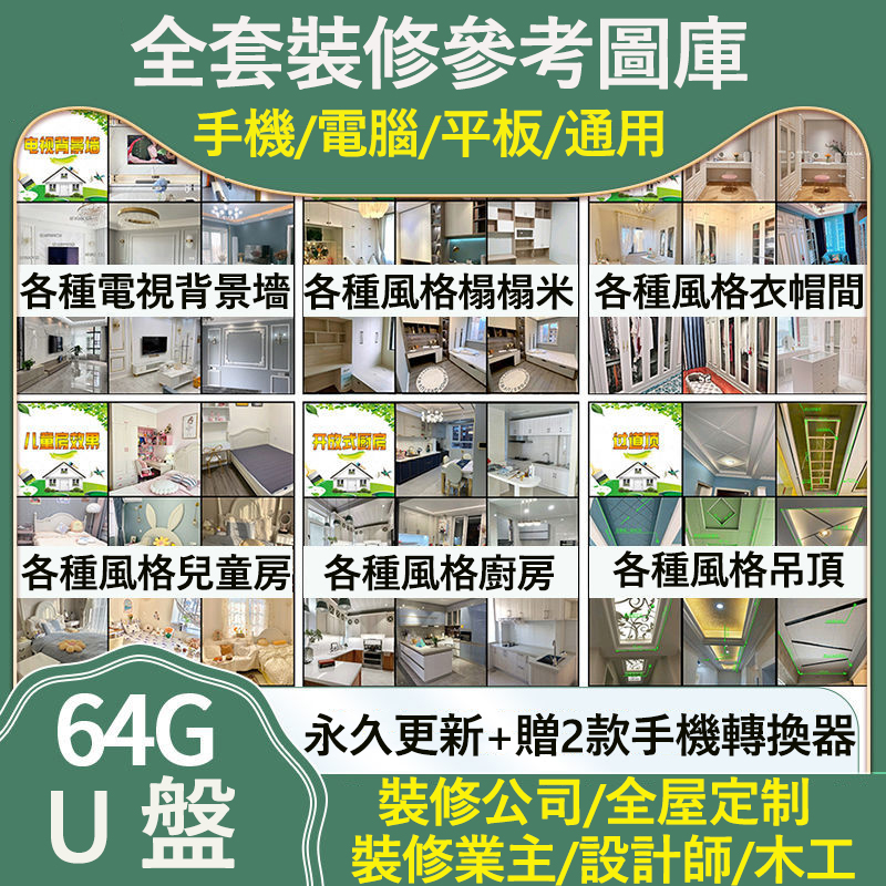 室內裝修全套裝潢效果圖100G U盤教學 木工高清各風格實景案例(128G U盤發貨,無需下載 即插即看,手機電腦都能觀看)