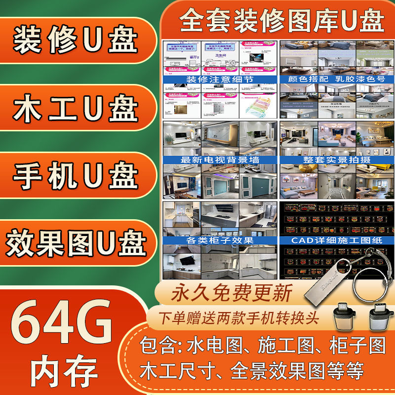 CAD動態圖庫大全(U盤64G)室內設計 工裝 家裝 家具平面立面 中式歐式施工圖 動態素材庫 (U盤出貨 無需下載 即插即看)