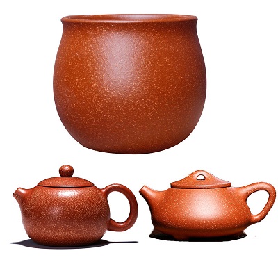 小紅泥鏤空金蟬竹簍紫砂壺