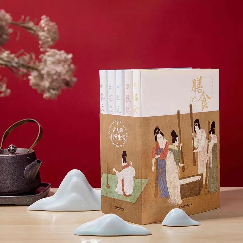 這套書就是《古人的日常生活》(全五冊),它包含「服飾」、「膳食」、「家居」、「茶飲」和「把玩」五個具體生活領域。 幾乎囊括了人們日常生活中基本衣食住娛的方方面面,如一套「古人日常生活百科全書」。 比起較為普遍的宏觀描述,這種貼近一般人視角的內容,更會讓人眼前一亮。